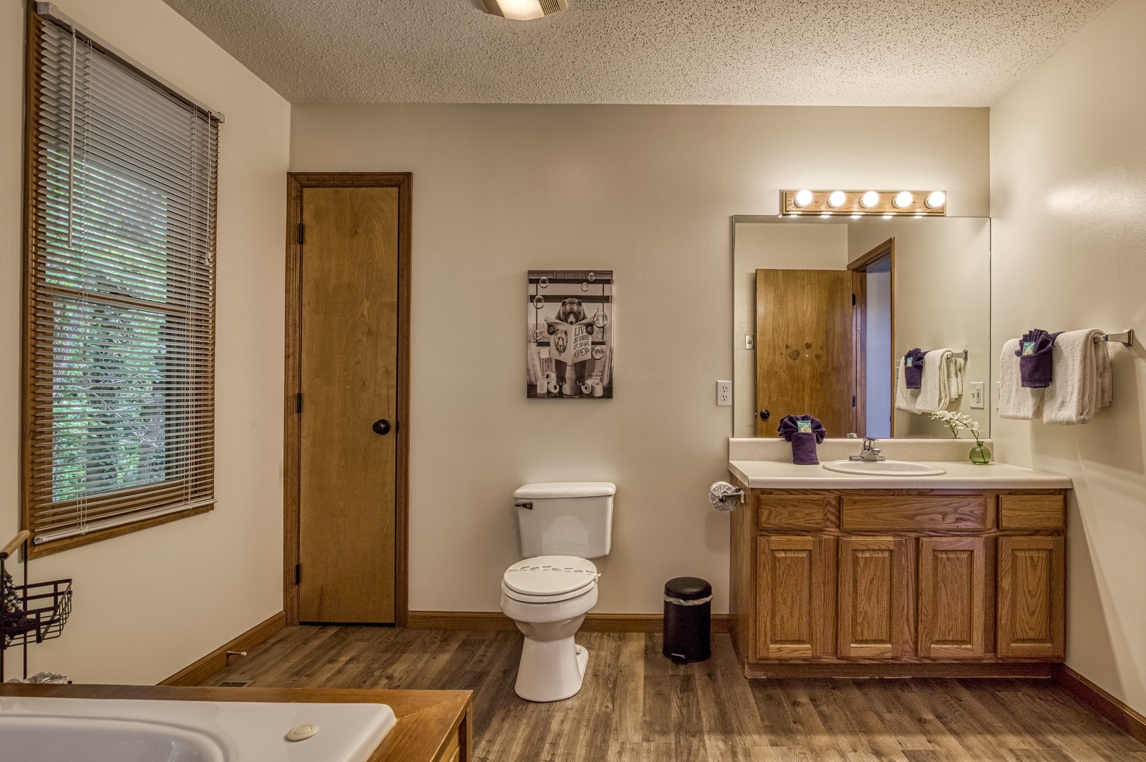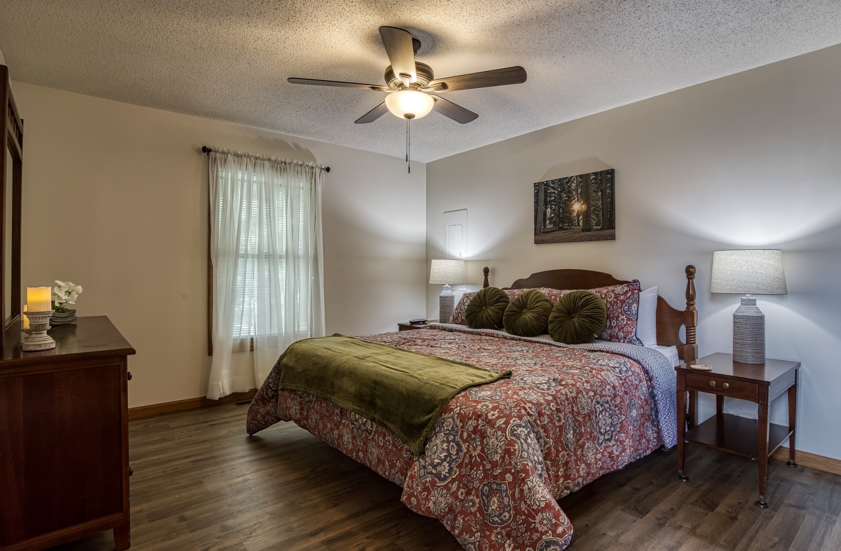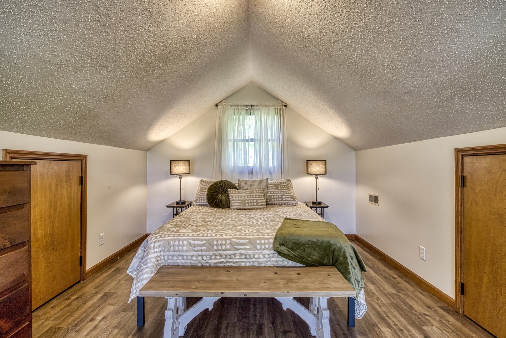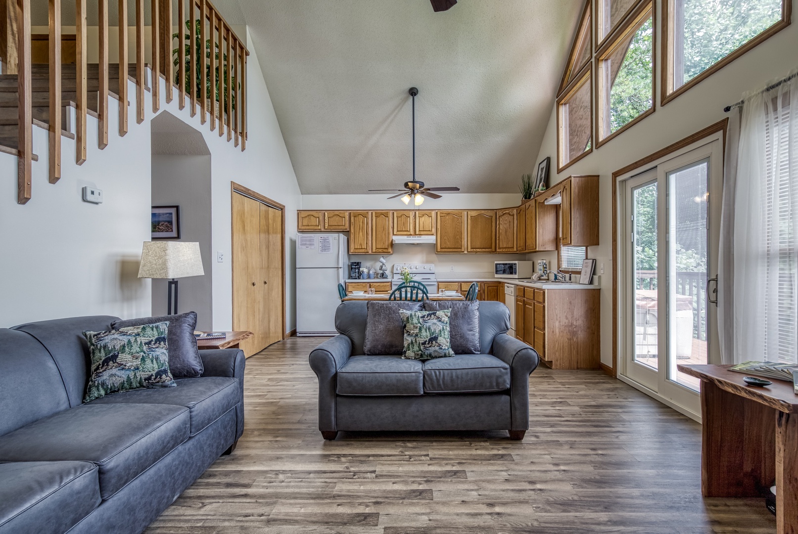 Mountain Laurel Lookout" is a beautiful chalet with AMAZING views of the Smoky Mountains year-round and located in the stunning Gatlinburg area. The chalet offers paved roads all the way to the cabin with parking for 2 cars comfortably. This adorable chalet is a 2-bedroom 1-bathroom that will sleep 6 and is 2 stories. You will be amazed when you step inside with all the amenities you could ask for in your home away from home. Entering into the Living room to be ready to be taken back by all the floor to ceiling windows overlooking the breathtaking mountain views. The living room will give you natural lighting to enjoy while being astonished by the mountains feeling right in your lap, just kick back on the comfy couch or loveseat after a long day of sight-seeing and take in all the mountains have to offer. On those cool winter nights curled up in front of the electric fireplace while watching your favorite show on the flat-screen TV. Just off the living room is a lovely porch for those mornings or evenings where you just want to sit and take in nature around. Take a dip in the ready to go Hot Tub to soak all your aching muscles. Adjacent to the living room is the fully equipped kitchen and dining for 4 guests. There is also the washer and dryer tucked away nicely in a closet on this level. Just through the living room is the main floor master King suite with an ensuite bathroom featuring a jacuzzi tub and a walk in shower. What would be better than waking up every morning looking out at the mountains? In the upstairs loft, which is open to below, you will find the 2nd bedroom. In this bedroom, you will have a Queen-size bed with mountain views that will make anyone smile. "Mountain Laurel Lookout" encourages relaxation and family time both inside and outside. Enjoy your morning coffee while sitting on the front deck taking in the views. If you enjoy cooking out, there is a Charcoal grill for your use, just bring your favorite food to grill and then you're ready to go. If you are wanting to experience the feeling of being on top of a mountain with mountain views as far as you can see, the "Mountain Laurel Lookout" is the perfect chalet for your next family vacation. What are you waiting for? Book "Mountain Laurel Lookout" today before it is too late!!!!