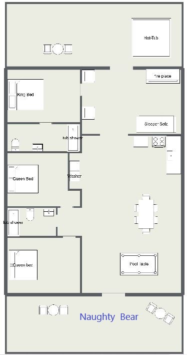 Great Stay! We loved the \"Naughty Bear\"" cabin. It was perfect for our family of 4. 3 bedrooms on the same level is what made us choose this cabin. The pool table was fun and was something to kill time at night. Clean and ready on time. We would definitely stay here again.