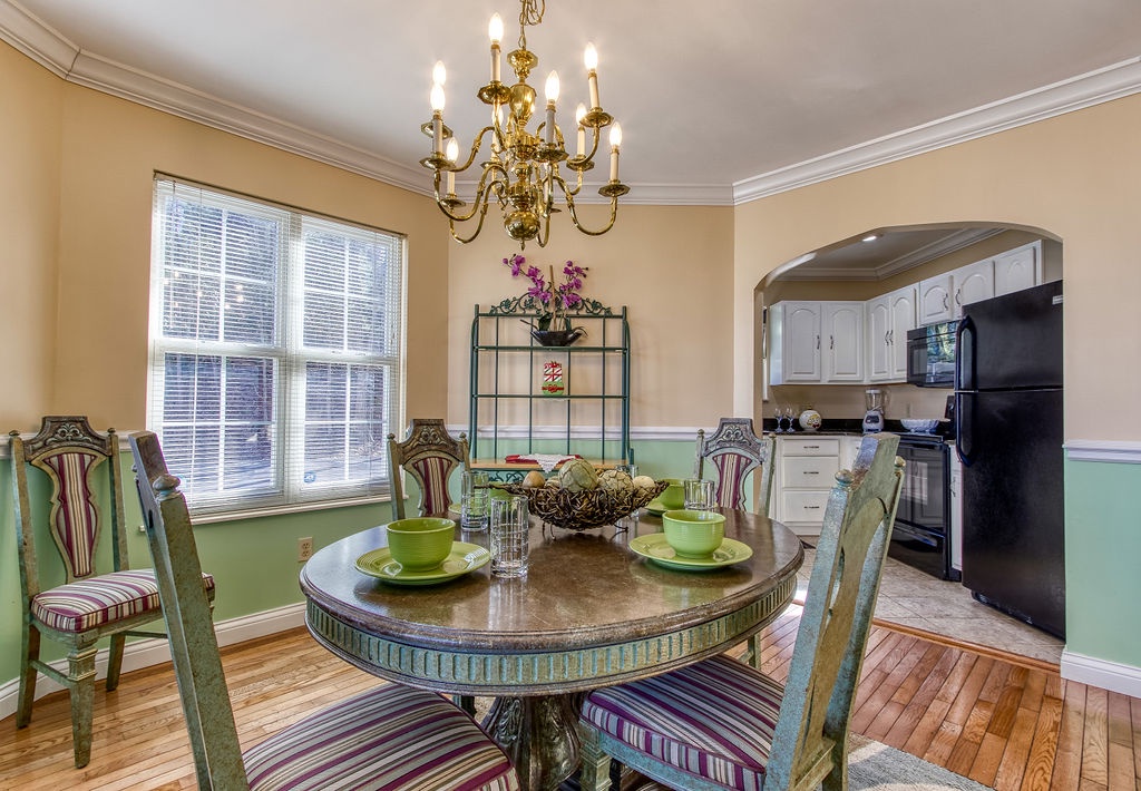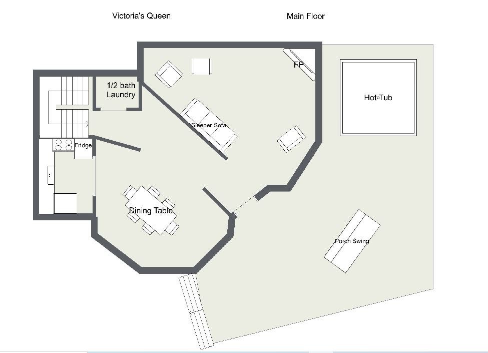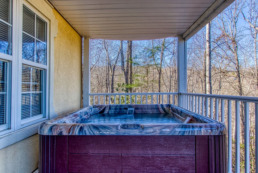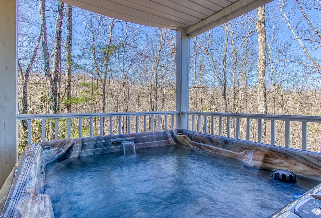 Immediately upon your arrival, you'll step onto the front porch, where you will see a hot tub just ready and waiting to be uses. You will have a grand entry way that separates the living and dining area.