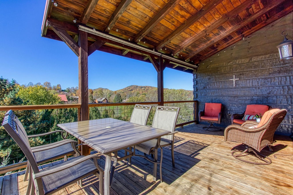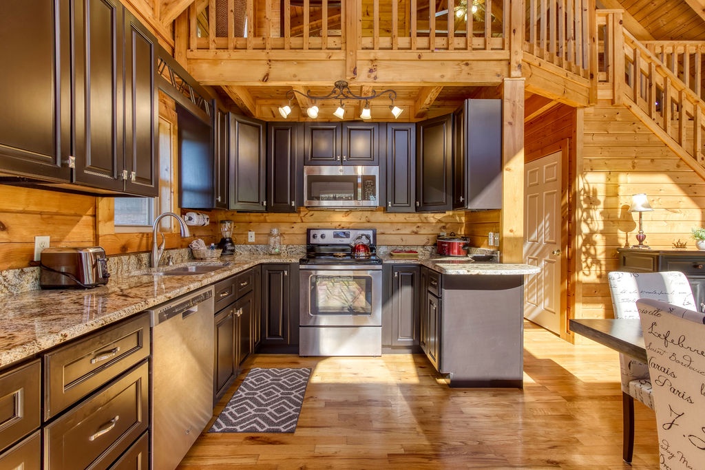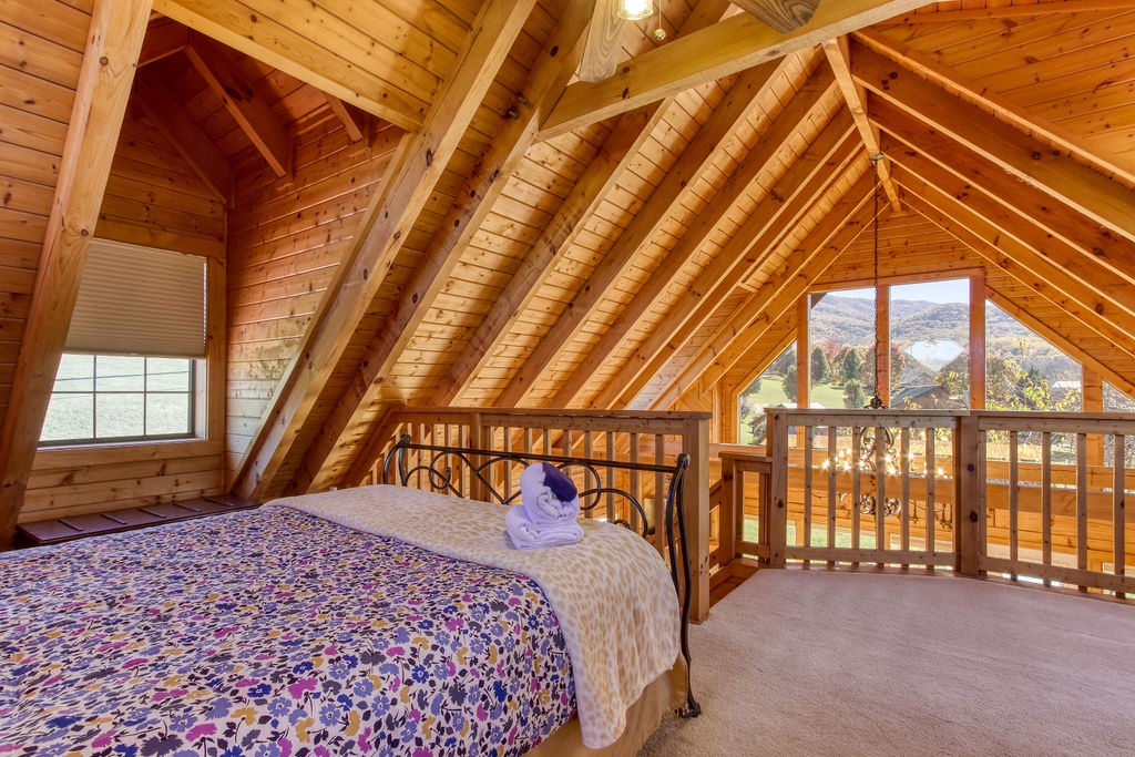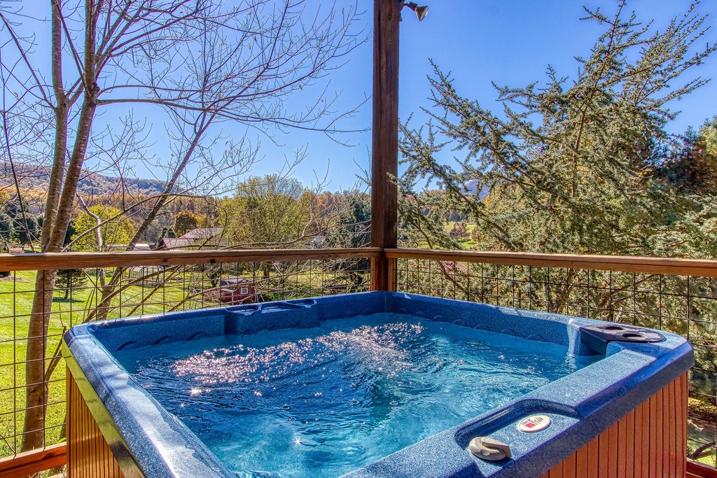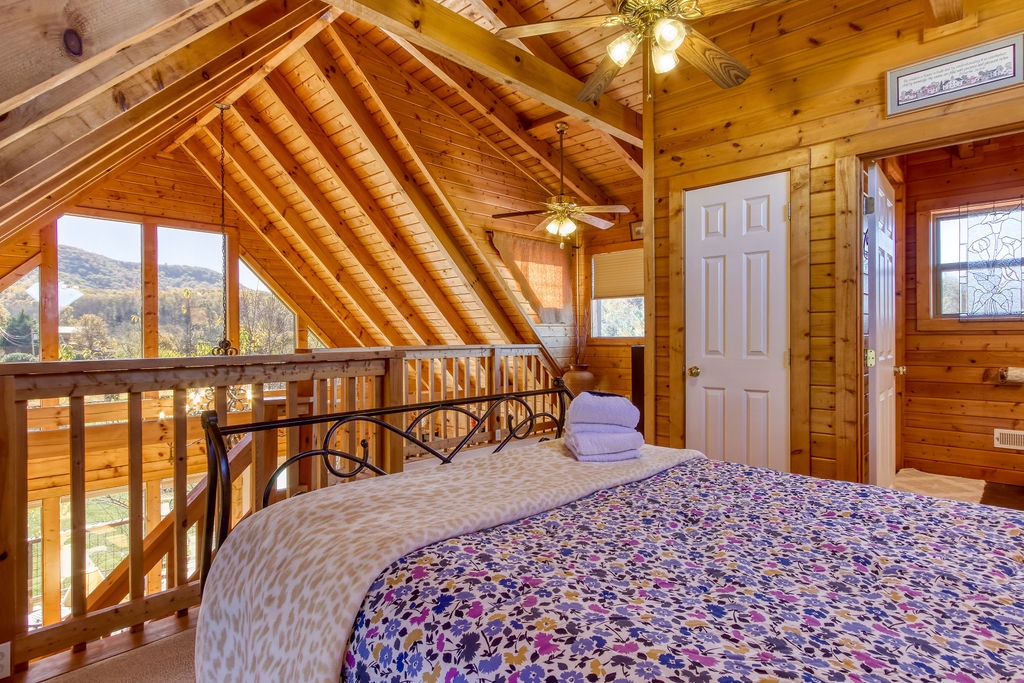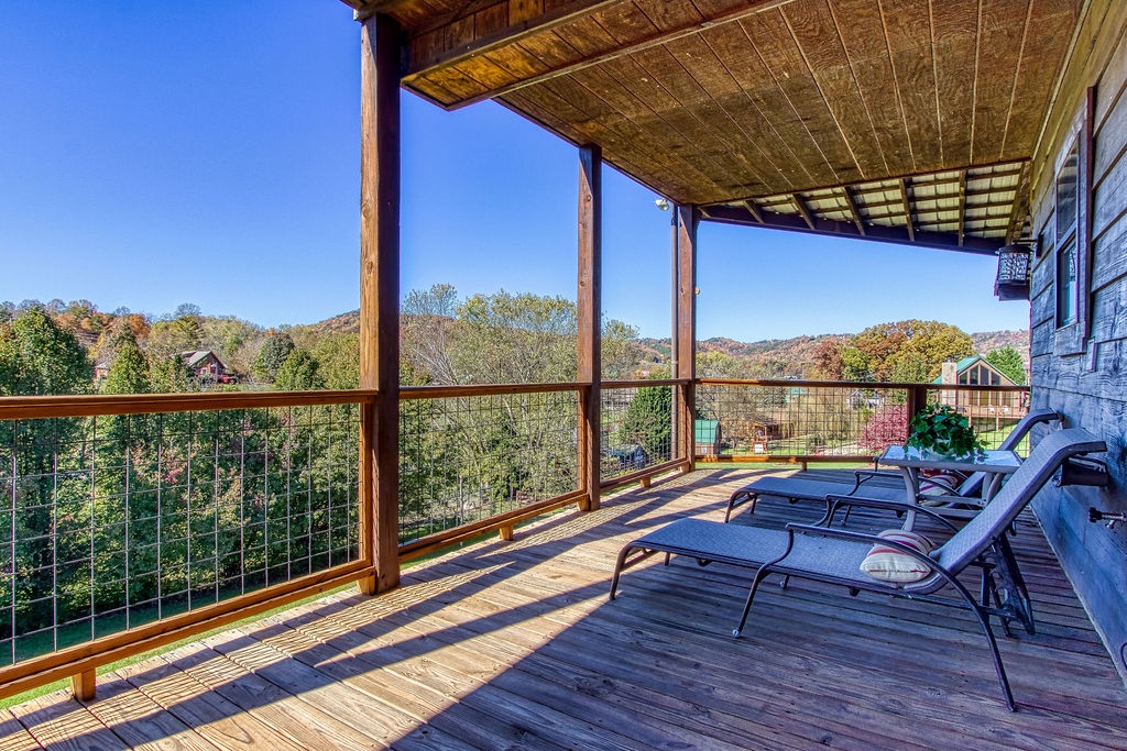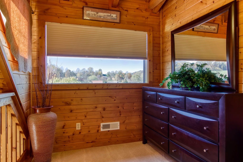 Come join us for a weekend getaway or a small family vacation in The Valley. Our cabin Picture Perfect is a perfect spot for anyone searching for some peace and quiet. It is a 3 bedroom 3 and a half bath that sleeps 6. The cabin is located in beautiful Wears Valley surrounded by the mountains with easy access to main road. Once arriving you will be in awe of the views of the mountains, the rolling hills, and forest trees. Just head up onto the wrap around porch an enter a cozy oasis. Upon entering you will be greeted with an open floor plan of the living room and kitchen. This space is honestly perfect for you to host family meals and watch the game at the same time not missing a beat. After dinner and the game cozy up on the loveseat and enjoy down time by the fireplace. Kiddos wanting something to occupy their time before bed. No problem, everyone can just head downstairs and let the kids get in a game of foosball, while you take an evening soak on the hot tub relaxing all those muscles before bed. When it is time to turn in just let the kids take the downstairs bedroom set up with two small twin beds and a full bathroom with tub/shower combo just beside that room. Give yourself the main level King Master. It offers a luxurious King bed, plenty of closet space, and a private bath with huge walk-in shower. There is also another suite in the open loft with a private bath that has the second walk in shower. After a good night sleep take your morning coffee out on the wrap around porch and enjoy the view. Fix lunch out on the grill before heading out for a night on the town to do it all over again. If you’re wanting a place to make wonderful memories and return to in order to escape the day-to-day hustle. Choose Picture Perfect it is truly the perfect place for your family getaway.