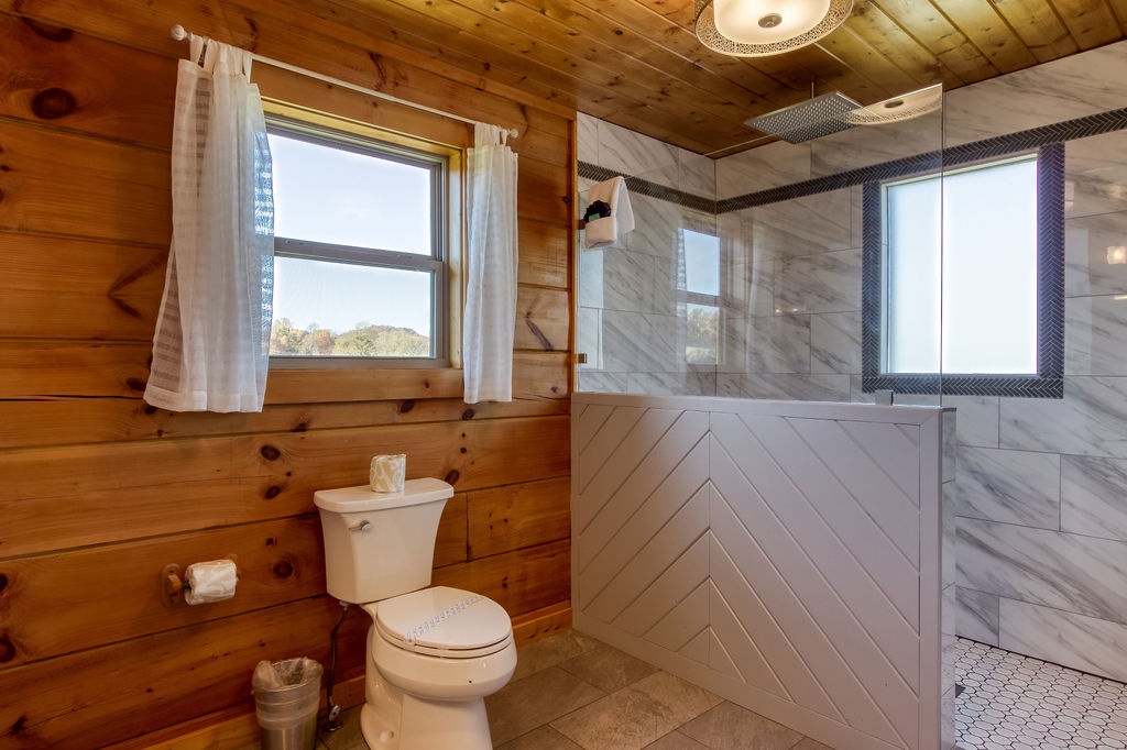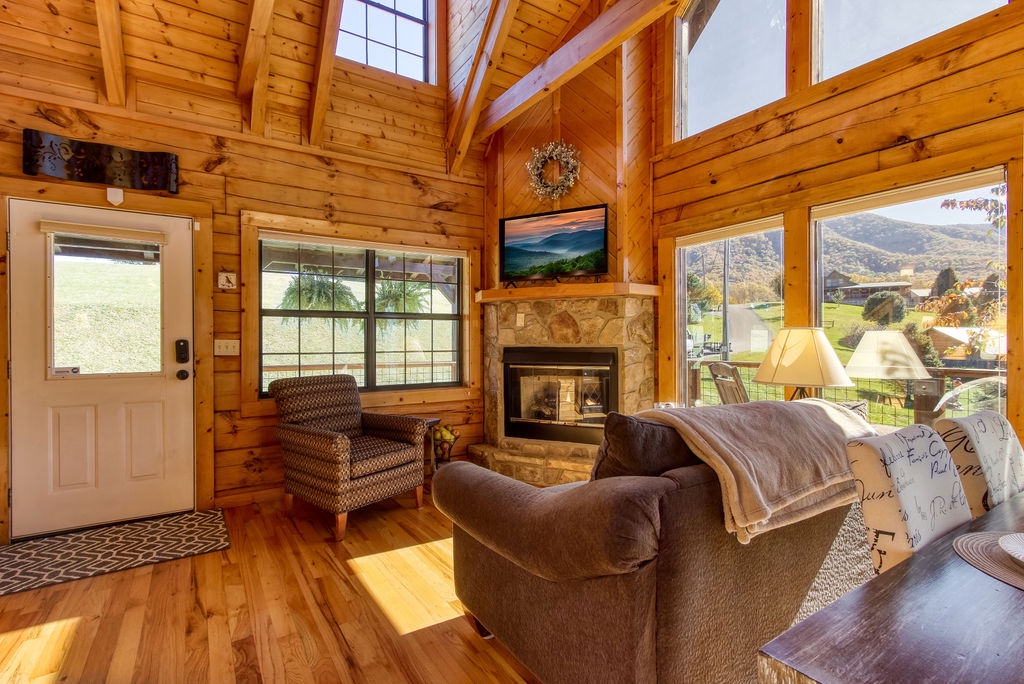 We enjoyed our stay in this cabin. It was a perfect layout for our families. The cabin was very clean and had anything you could ask for. Loved the large walk in rain shower. Only about 8 miles from the parkway in a peaceful area.