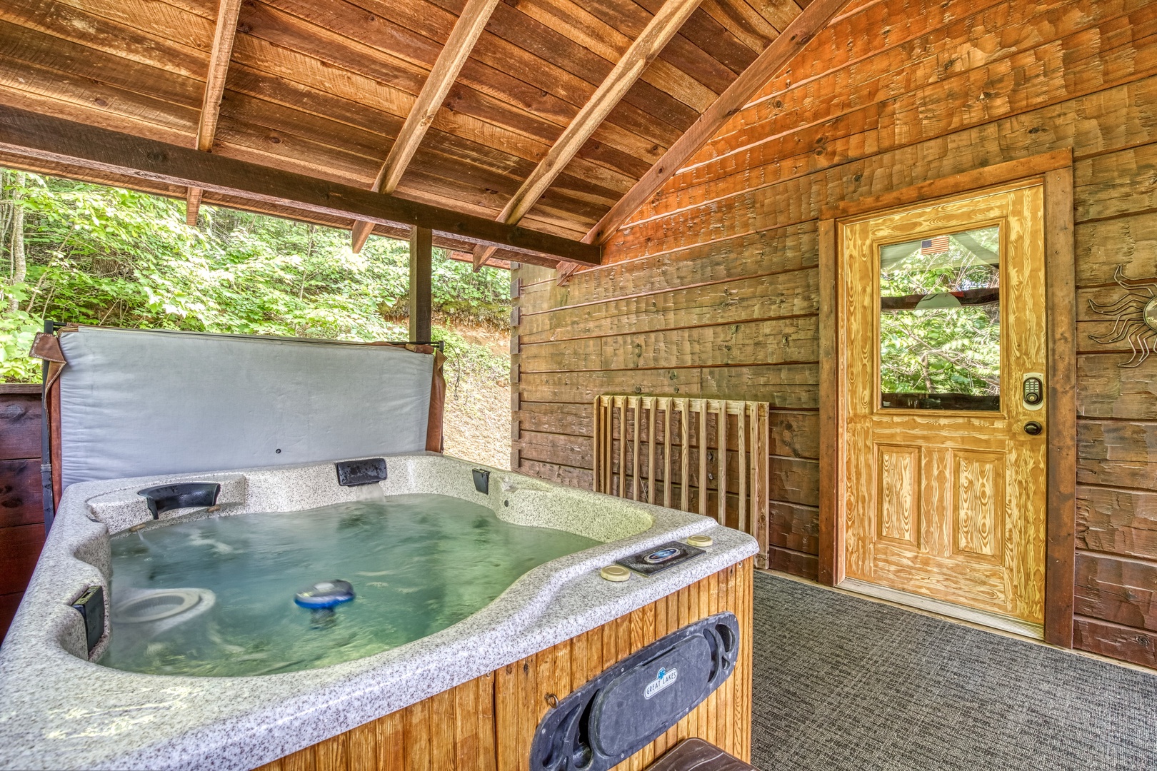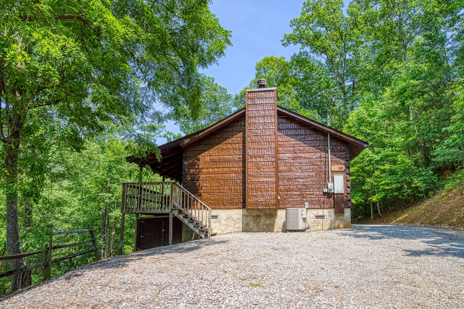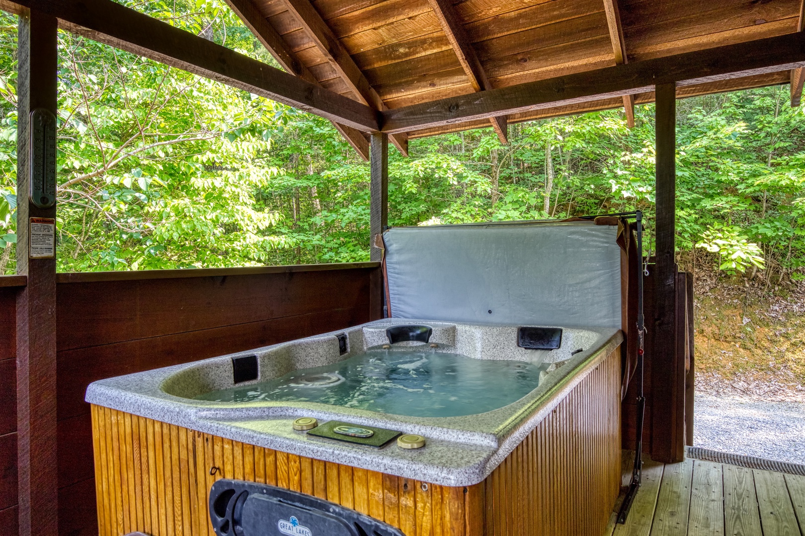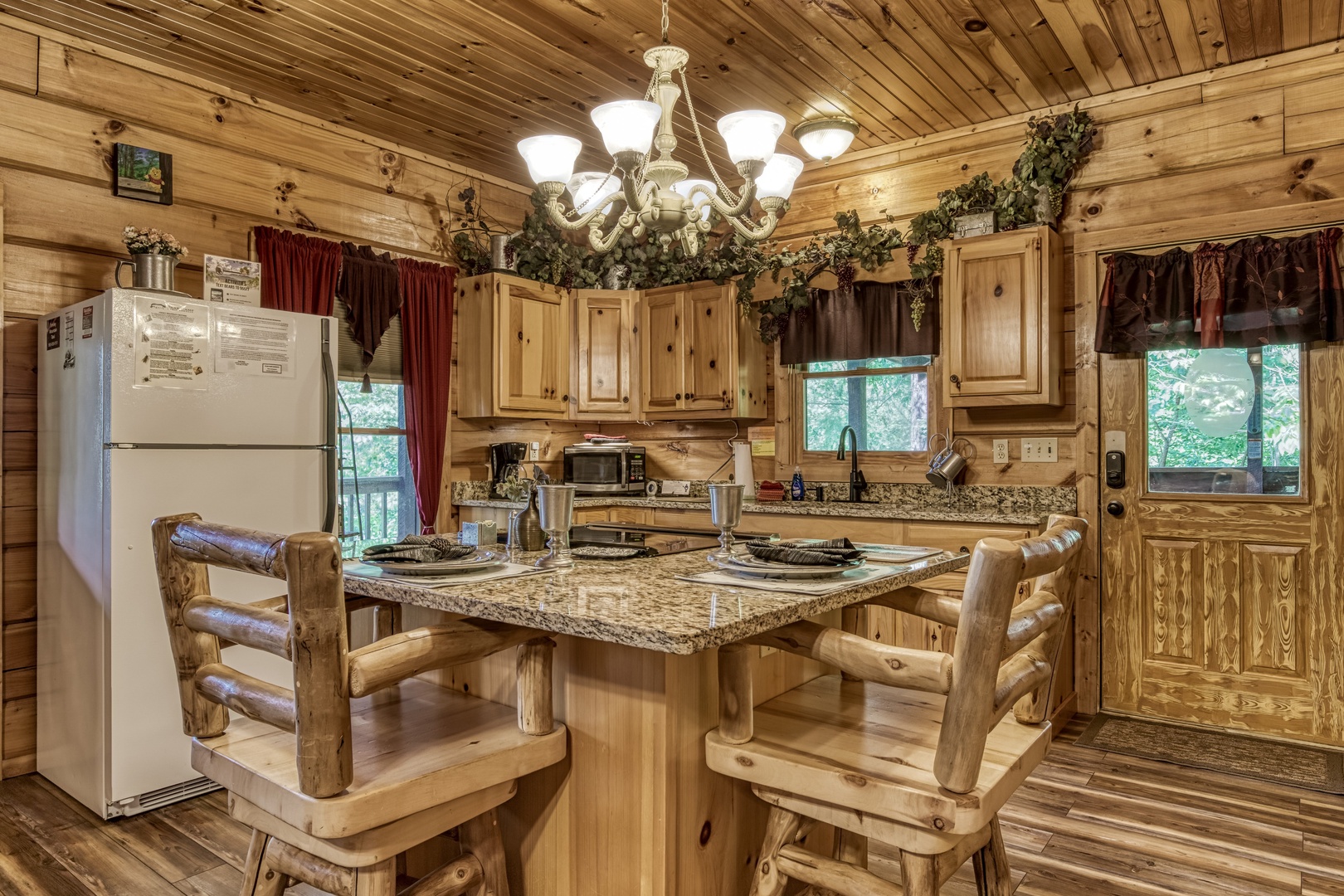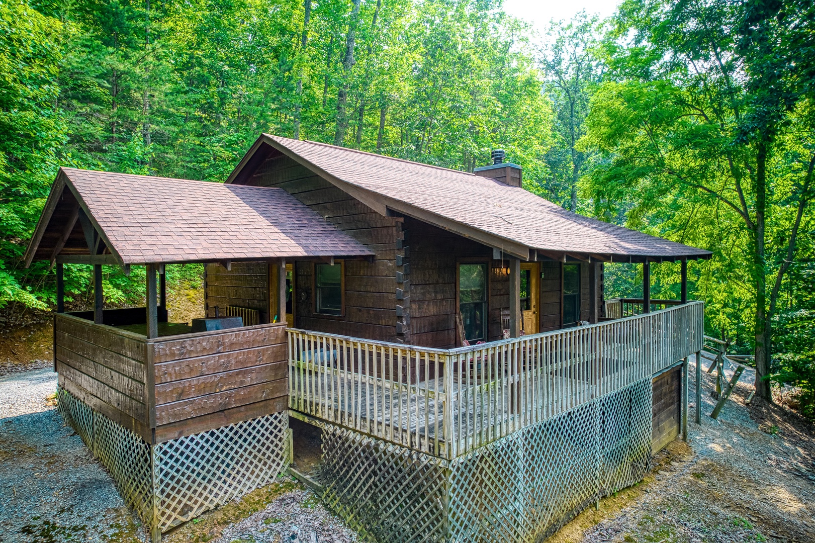 "Pooh Bear" is the perfect romantic getaway for honeymooners, anniversaries, or getaways. The unique decor of this cabin will excite and intrigue you, as you are greeted from the time you enter by the soothing sounds of easy listening on the stereo. The table is already set and ready for a romantic dinner for two. Located on Bear Mountain, approximately a 20-minute drive from Pigeon Forge, Splash Country & Dollywood, and 25-30 to Gatlinburg. This cabin has curvy, paved mountain roads and some steep inclines that can be narrow at times. There are also gravel roads that would not be recommended for motorcycles or trailers in any weather. There is parking available for 1 vehicle. This 1 Bedroom, 1 Bath unit that sleeps 2 has an open floor plan "studio" type cabin that is perfect for spending your time with the one you love. There are 7 steps to reach the cabin. There is a fully equipped kitchen (without a dishwasher), a King size bed, a Living area with love seat, TV, and stereo, along with a romantic wood burning fireplace. There is also a full bath with a shower bathtub combination. The deck offers a relaxing Hot Tub as well as rocking chairs that offer beautiful mountain & wooded views and a large charcoal grill for dinner under the stars. No matter what time of the year you visit, you will enjoy this private and secluded cabin perfect for rekindling or starting up a new flame. If you are looking for a relaxing, romantic cabin that is private and secluded and offers beautiful mountain views, "Pooh Bear" is the perfect cabin for you. Don't miss out --- Call us today to book a getaway you will always remember.
