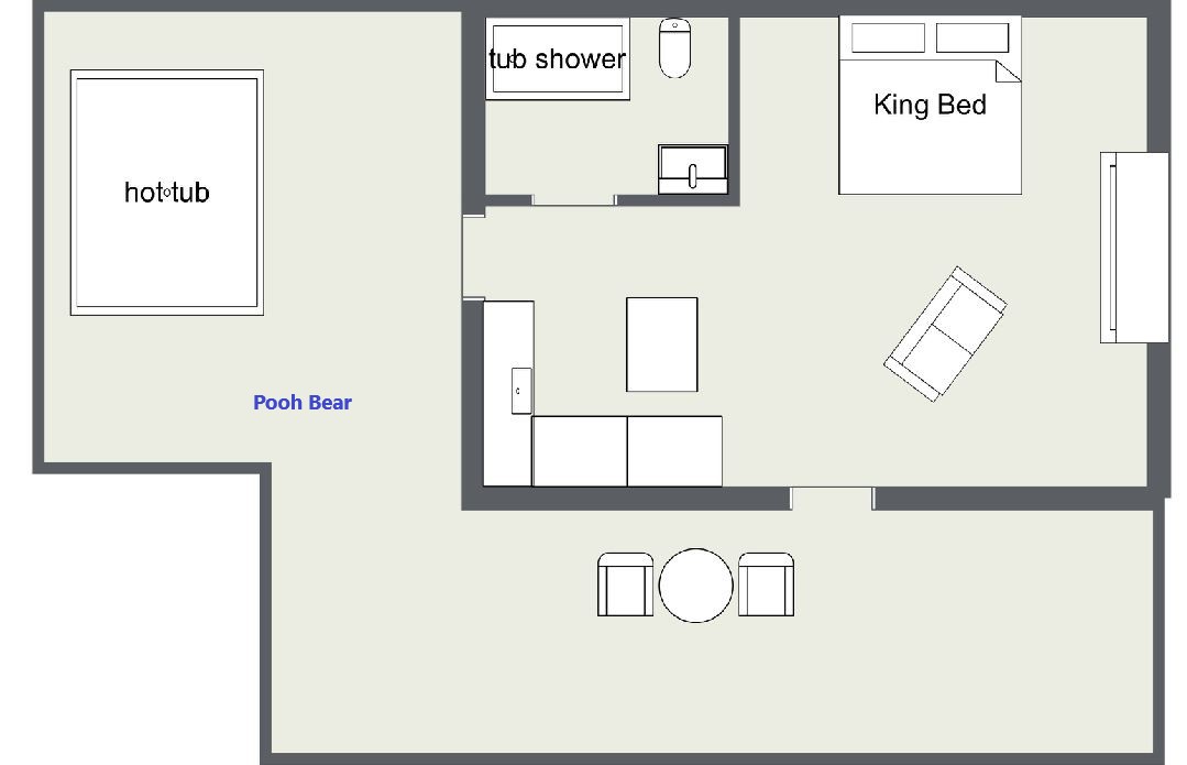 We stayed in poobear and it was a asewome experience I we dident want to leave it was so hard to walk away we will be back thank you so much for all your kindness I would rate this place 1000 stars if I could the hot tub was just wow and it had everything we needed in the cabin the silence of the night was so stress free I could have stayed forever we will be back thanks again for the awesome experience