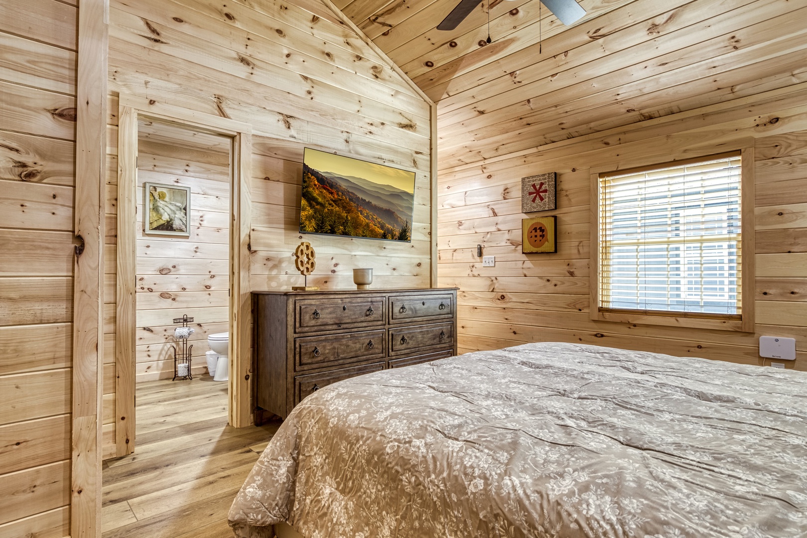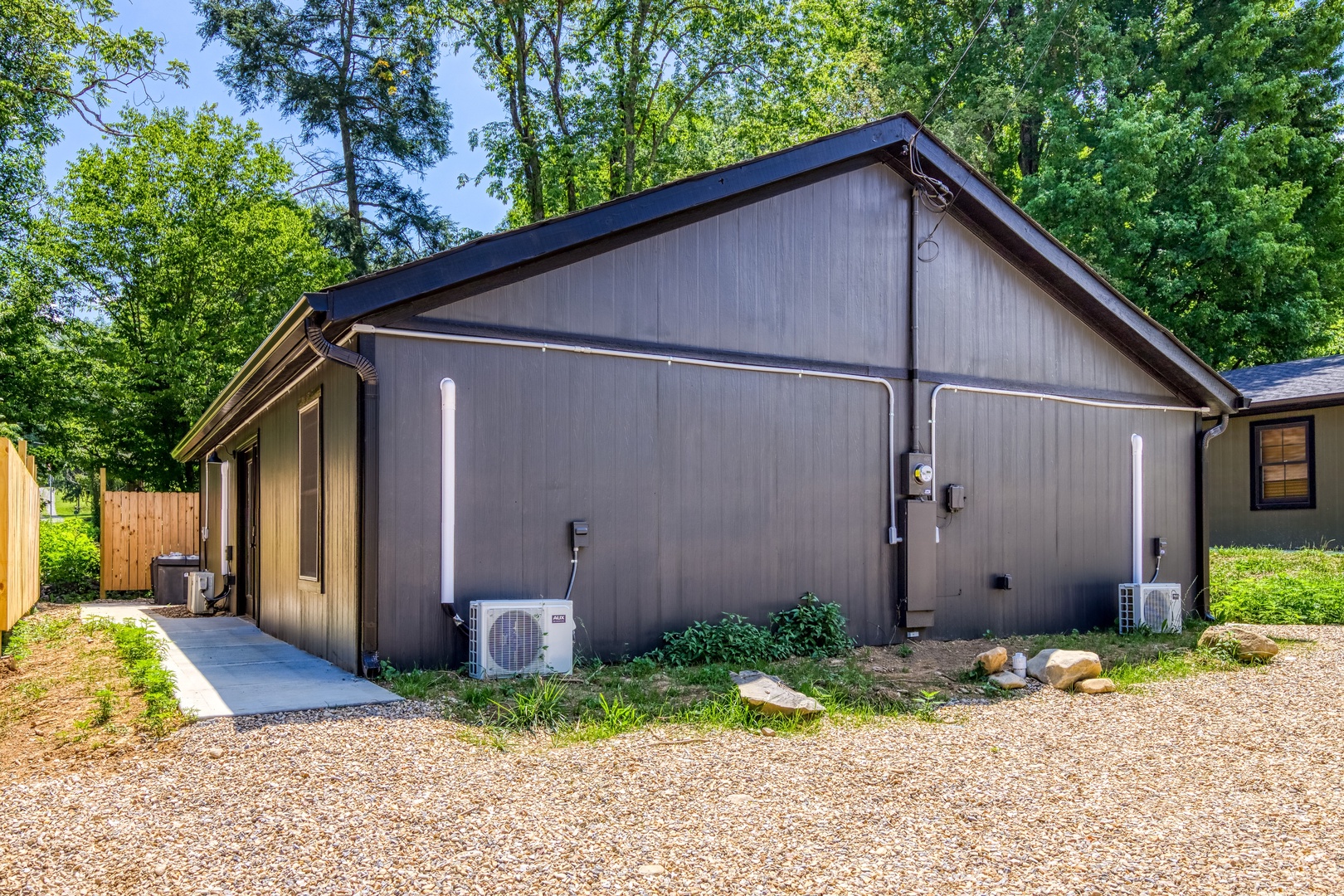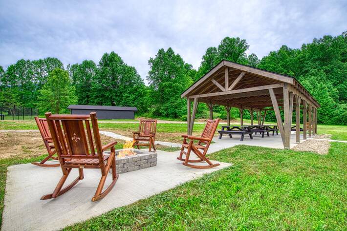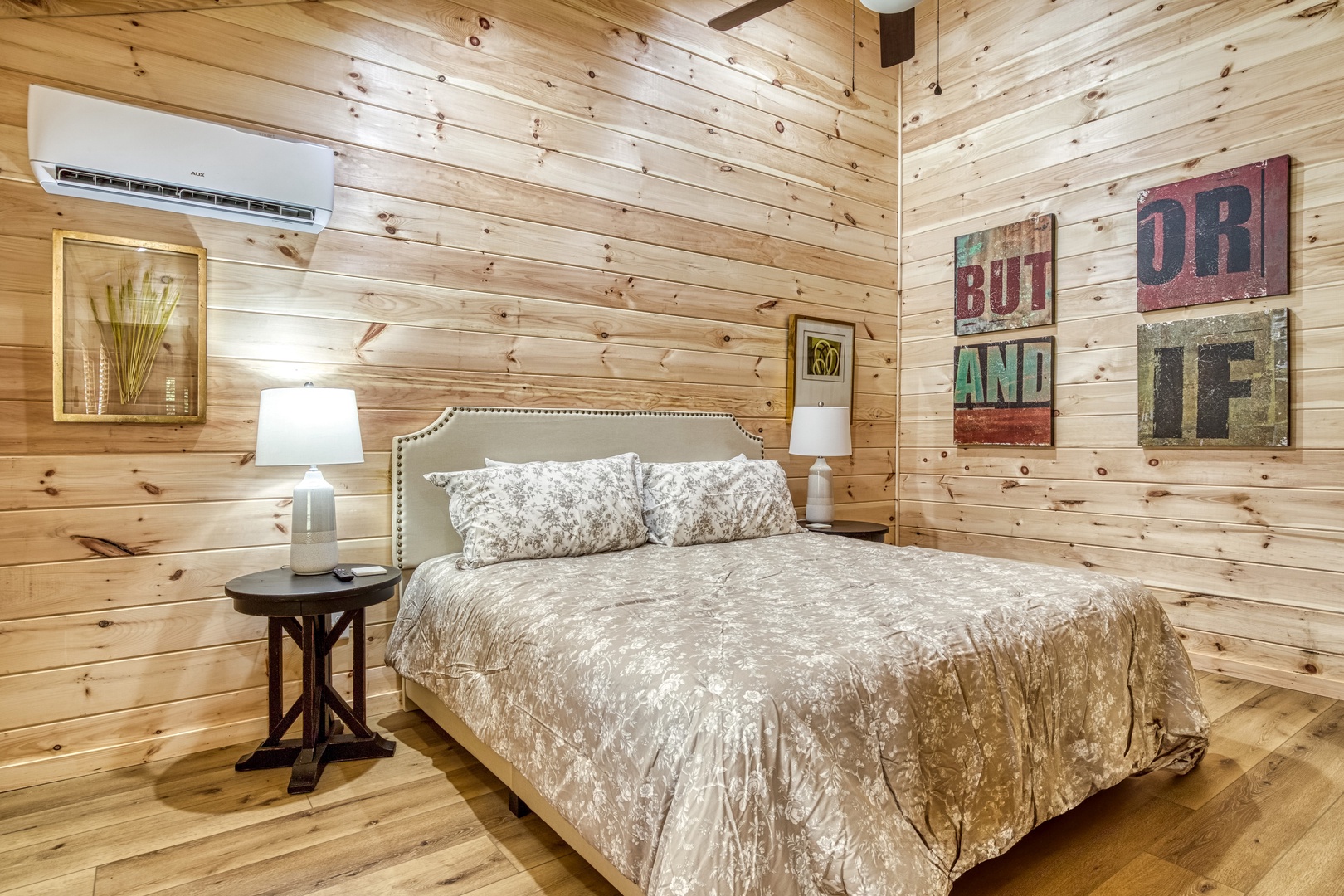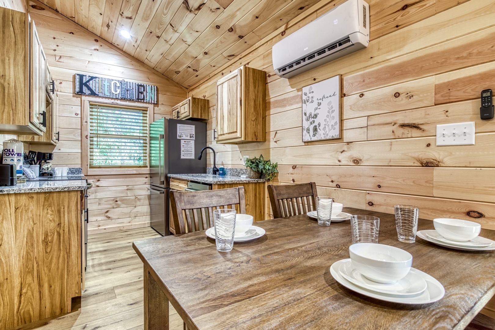 Welcome to your perfect getaway at "Restful Bungalow" – a serene small resort nestled amidst the natural beauty of the countryside. Our charming vacation rental, a one-level duplex cabin, offers an idyllic retreat for up to four guests, promising a rejuvenating escape from the hustle and bustle of everyday life. As you step inside, you'll be greeted by a cozy and inviting interior designed to provide both comfort and convenience. The fully equipped kitchen boasts modern stainless steel appliances, making meal preparation a breeze. Whether you're whipping up a delicious breakfast or a gourmet dinner, this kitchen has everything you need. The open living and dining area is bathed in natural light, creating a warm and welcoming ambiance. In the living room, you'll find a generously-sized flat-screen TV, perfect for movie nights or catching up on your favorite shows. For extra accommodation, there's a comfortable sleeper sofa available, ensuring everyone has a cozy place to rest. Step through the back door, and you'll discover the highlight of this vacation rental – the back deck overlooking the tranquil Greenbriar Creek. It's the ideal spot for sipping your morning coffee, enjoying a meal al fresco, or simply basking in the beauty of nature. The soothing sounds of the creek will provide the perfect soundtrack to your relaxation. The bedroom is a haven of comfort and style, featuring a luxurious bed and its own large flat-screen TV for late-night entertainment. The ensuite bathroom is a spa-like retreat with a walk-in shower, ensuring that you start and end your day in pure comfort and luxury. Outside the cabin, Greenbriar Creek Preserve offers a Pickleball Court, a fantastic community Pavilion equipped with picnic tables, charcoal grills, and two inviting fire pits. Gather with friends and family for a barbecue or share stories around the crackling fire. For couples looking to capture some magical moments, the newly constructed covered bridge provides a picturesque backdrop for unforgettable photos. Whether you're seeking a romantic escape, a family adventure, or a quiet retreat, this duplex vacation rental at "Restful Bungalow" promises a memorable and rejuvenating experience. Come and immerse yourself in the natural beauty and serenity of this charming resort, where relaxation and enjoyment await at every turn. Escape to "Restful Bungalow" and unwind in our cozy one-level duplex cabin that sleeps four. This charming retreat sits beside the tranquil Greenbriar Creek and offers a fully equipped kitchen with stainless steel appliances, an open living and dining area, a spacious bedroom with a flat-screen TV, and a luxurious ensuite bathroom with a walk-in shower.