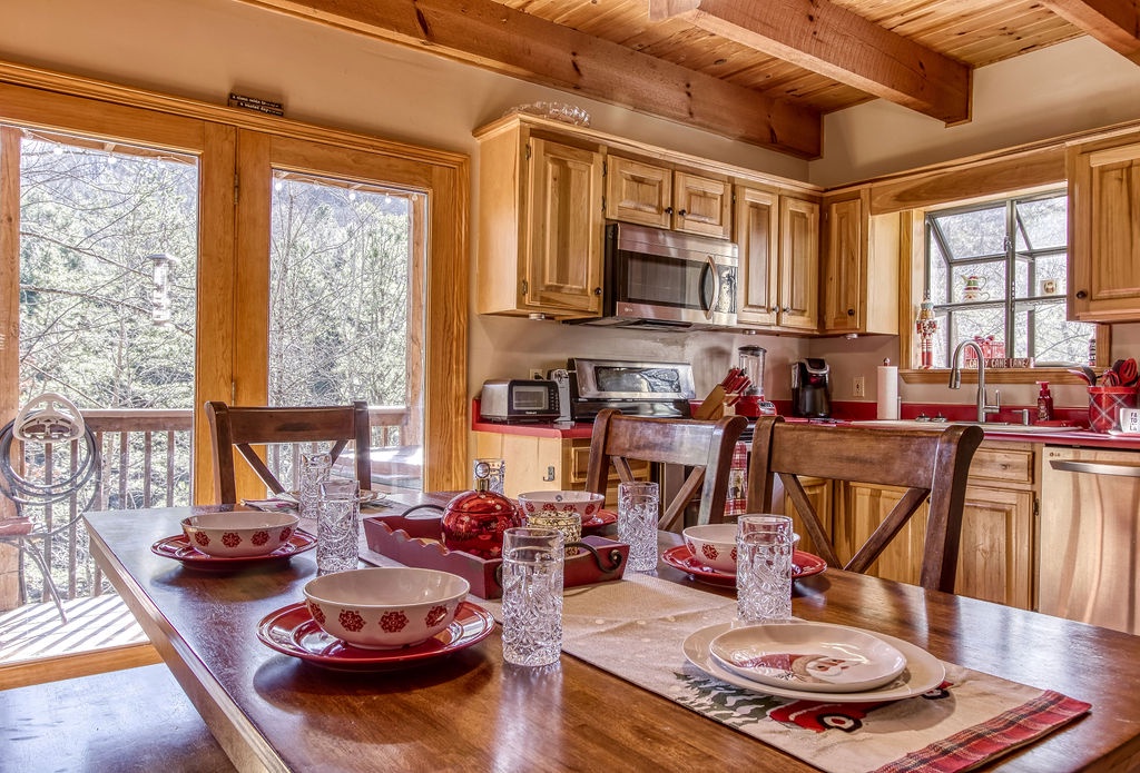 This was a GREAT cabin. My wife loves Christmas so she also thoroughly enjoyed the stay. It was decorated very tastefully and the views were spectacular. Very spacious, clean, and the kitchen was well equipped. Close to town as well. We will definitely stay again!
