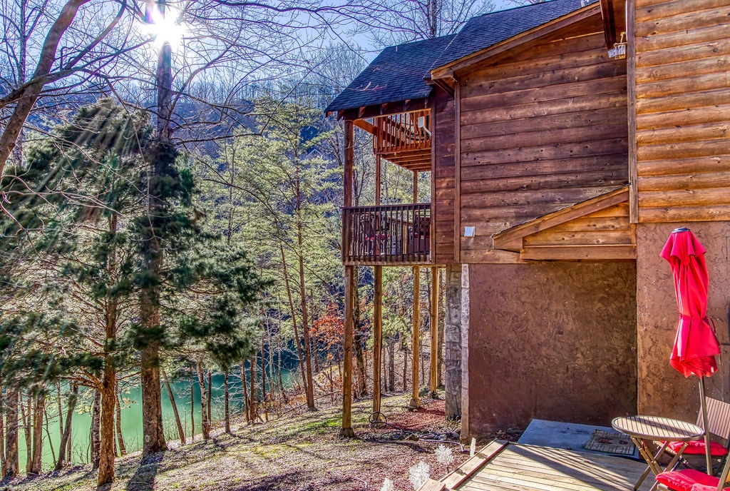 The upstairs loft is a perfect hangout and hideaway for the kids, just follow the beautiful spiral staircase, which leads to a full futon bed and two single twin beds with a balcony that overlooks the beautiful lake. In addition to the indoor comforts, this cabin also offers some enticing outdoor activities.