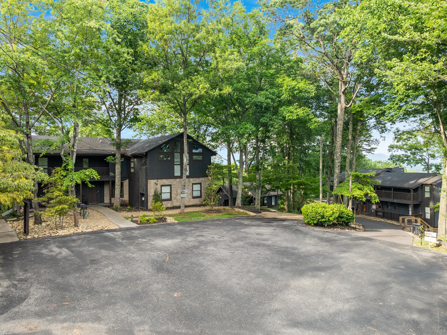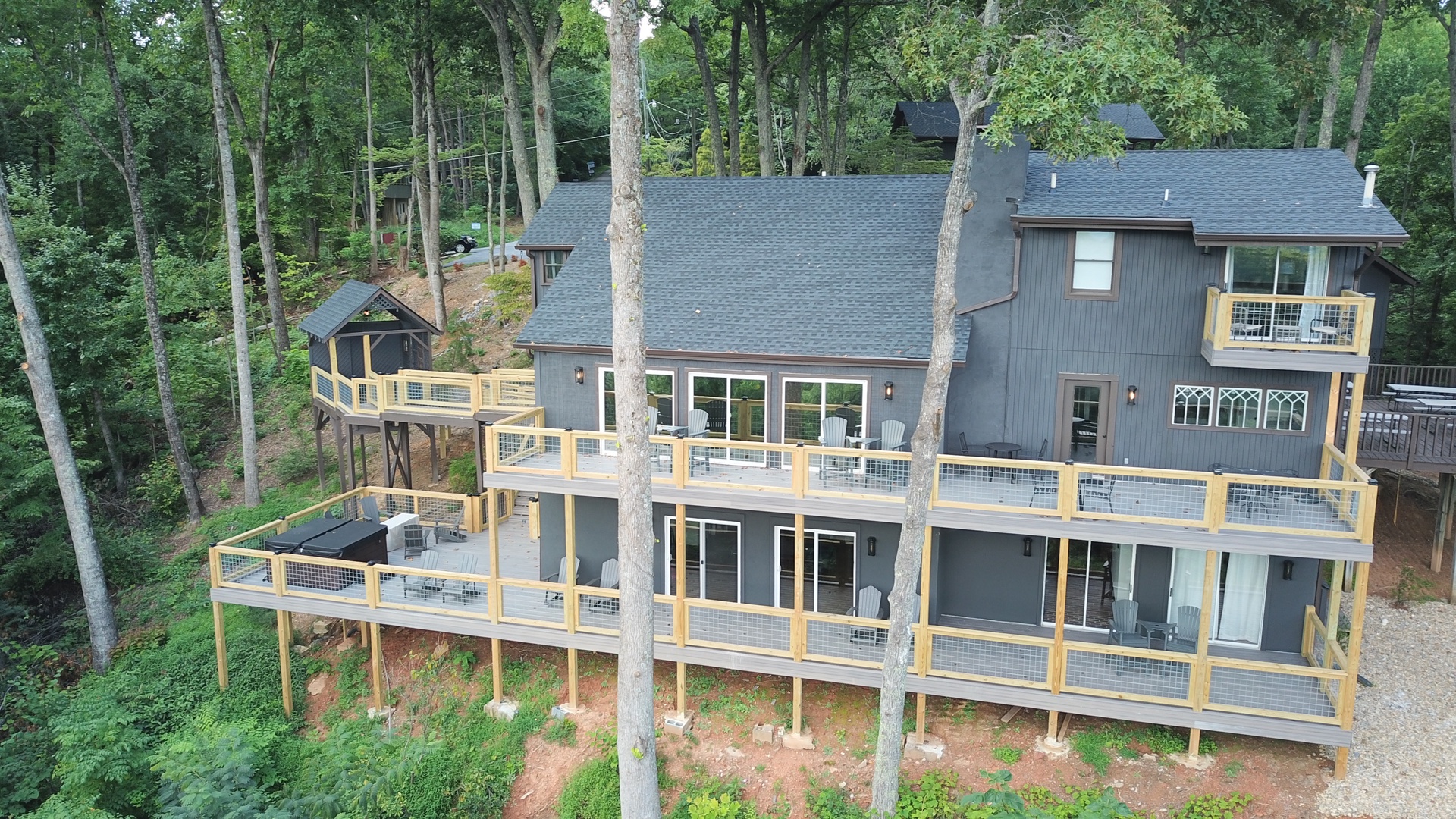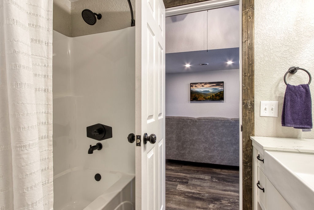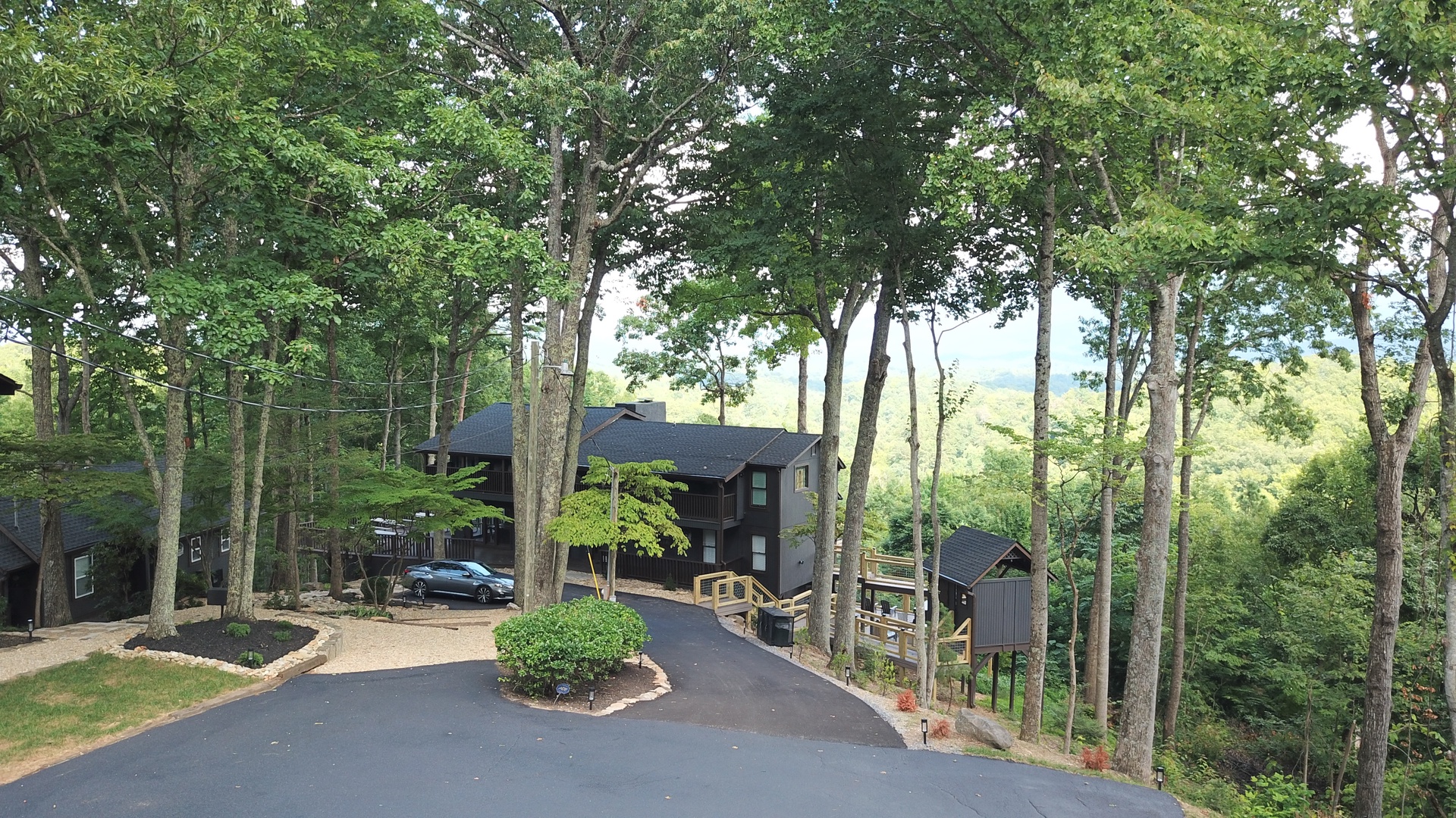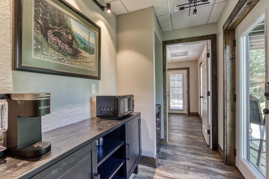 Planning your next family reunion or corporate retreat? If you want to veer away from the typical local park and backyard cookout, come create the most memorable vacation ever. From the breathtaking views to the very spacious accommodations. Along with the calming and relaxing setting of the mountains. Welcome to Planning your next family reunion or corporate retreat? If you want to veer away from the typical local park and backyard cookout, come create the most memorable vacation ever. From the breathtaking views to the very spacious accommodations. Along with the calming and relaxing setting of the mountains. Welcome to Smoky Vista Resort. Sitting atop the treetops of Gatlinburg, you won't want to spend another big family get together anywhere else. Smoky Vista Resort is comprised of three beautifully renovated homes. Smoky Vista Retreat , Smoky Vista Cottage and Smoky Vista Lodge. When you pull up into the level driveway with ample space for parking you will see Smoky Vista Retreat directly in front of you. Smoky Vista Retreat is a 6 bedroom, 6 bathroom home with ample decking and space to be enjoyed by all. It has a lower level exterior entry only double king suite with a shared convenience center that includes a mini fridge and coffee bar. Just a few steps from the entry of the lower level you will find the brand new, covered hot tub with a bar and seating for 2. Inside on the main level you will find the fully equipped kitchen with brand new stainless steel appliances, the large dining & living area, a bathroom nestled at the end of the hall, a master suite with bathroom and a king bedroom. Just a short climb up the stairs to the top floor you will find the laundry room, another king master suite, the large game room with an electric fireplace equipped with a pool table, a multicade and enough TV’s to catch all the game day feats, another full bathroom and the bunk room which house two sets of twin bunk beds. There is also a deck with an outdoor firepit to enjoy a libation around during half time. Nestled between Smoky Vista Retreat and Smoky Vista Lodge is the gorgeous one bedroom Smoky Vista Cottage. Equipped with its own rotund hot tub, this little cottage will meet the needs of a family of 4 with a King bed and a queen sleeper sofa in the living area. Smoky Vista Cottage is equipped with a full kitchen and dining area as well. The perfect little space for newlyweds or grandparents for your family reunion or the CEO for your executive retreat. To the right of the cottage is the incredibly restored Smoky Vista Lodge. This home is spectacular to say the least. It is a 6 bedroom, 6 bathroom home with 3 stories featuring exposed wood beams, restored original brick flooring in the game room and so much decking to enjoy the endless views of the Great Smoky Mountains. Walking in the front door of the lodge you will be greeted with beautiful views just through the sitting room glass doors. To the left you will find the dining room with ample seating for the whole crew, the modern mountain home kitchen equipped with everything you will need to prepare meals, just off the dining room there is a huge dining deck equipped with 5 large resin picnic tables and a gas grill. Back inside on the main level you will find a king bedroom with electric fireplace and doors to the deck, a full bathroom, a sitting area in front of the fireplace as well as a sitting area in front of the tv. Upstairs you will find two king bedrooms with electric fireplaces and a jack and jill bathroom both having access to the deck facing the driveway. Just down the catwalk you will find the Rolls Royce of Master Suites with a sitting area with a sleeper sofa, a reading area, a beautiful walk in shower, and a private deck on each side of the room, one with an impeccable view of the mountains. Head down to the bottom level to find another king suite with electric fireplace and mountain views just off the gameroom with an electric fireplace equipped with shuffleboard, a pool table, a poker table, multicade and enough TV’s to catch all the game day goodness. You will also find the laundry room on this floor, a full bathroom and the bunkroom equipped with two sets of twin bunk beds. It’s time to play your getaway for Smoky Vista Resort in Gatlinburg, Tennessee!