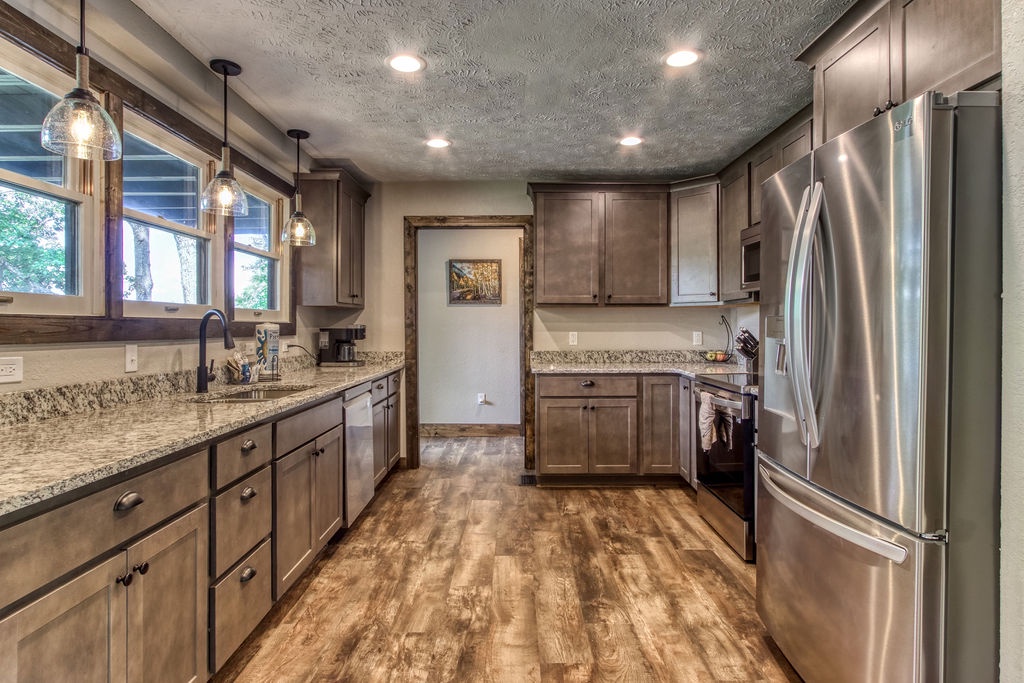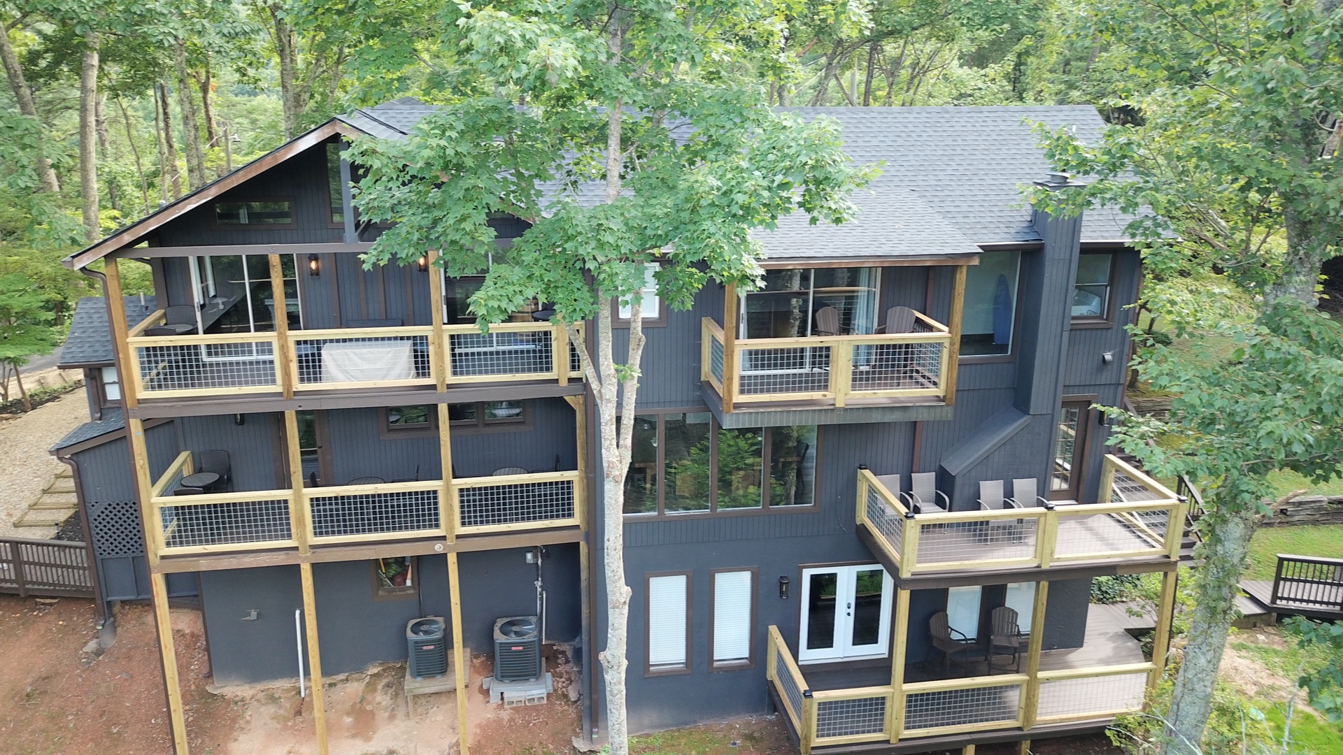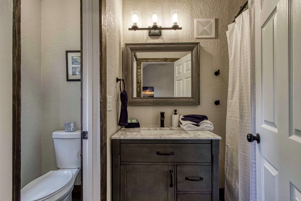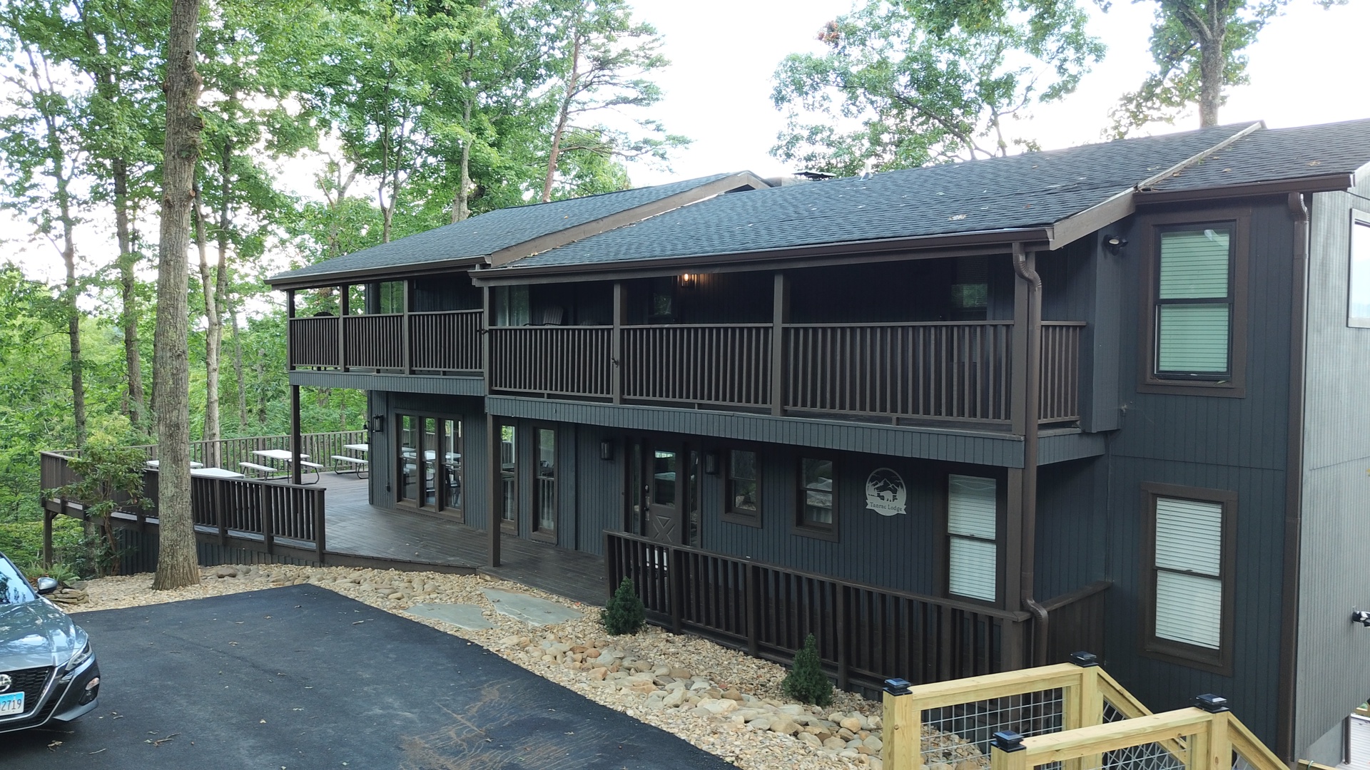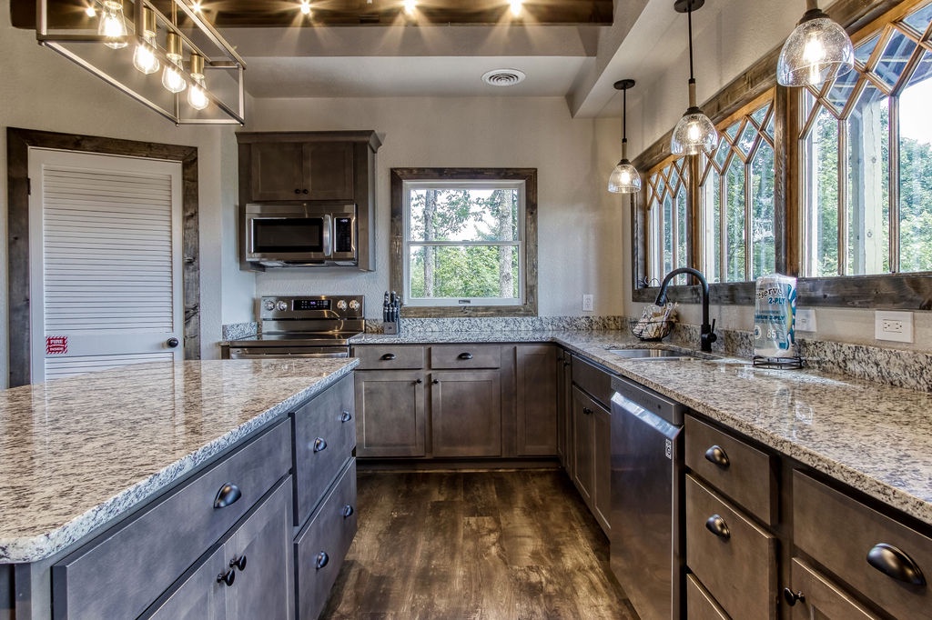 Planning your next family reunion or corporate retreat? If you want to veer away from the typical local park and backyard cookout, come create the most memorable vacation ever. From the breathtaking views to the very spacious accommodations. Along with the calming and relaxing setting of the mountains. Welcome to Planning your next family reunion or corporate retreat? If you want to veer away from the typical local park and backyard cookout, come create the most memorable vacation ever. From the breathtaking views to the very spacious accommodations. Along with the calming and relaxing setting of the mountains. Welcome to Smoky Vista Resort. Sitting atop the treetops of Gatlinburg, you won't want to spend another big family get together anywhere else. Smoky Vista Resort is comprised of three beautifully renovated homes. Smoky Vista Retreat , Smoky Vista Cottage and Smoky Vista Lodge. When you pull up into the level driveway with ample space for parking you will see Smoky Vista Retreat directly in front of you. Smoky Vista Retreat is a 6 bedroom, 6 bathroom home with ample decking and space to be enjoyed by all. It has a lower level exterior entry only double king suite with a shared convenience center that includes a mini fridge and coffee bar. Just a few steps from the entry of the lower level you will find the brand new, covered hot tub with a bar and seating for 2. Inside on the main level you will find the fully equipped kitchen with brand new stainless steel appliances, the large dining & living area, a bathroom nestled at the end of the hall, a master suite with bathroom and a king bedroom. Just a short climb up the stairs to the top floor you will find the laundry room, another king master suite, the large game room with an electric fireplace equipped with a pool table, a multicade and enough TV’s to catch all the game day feats, another full bathroom and the bunk room which house two sets of twin bunk beds. There is also a deck with an outdoor firepit to enjoy a libation around during half time. Nestled between Smoky Vista Retreat and Smoky Vista Lodge is the gorgeous one bedroom Smoky Vista Cottage. Equipped with its own rotund hot tub, this little cottage will meet the needs of a family of 4 with a King bed and a queen sleeper sofa in the living area. Smoky Vista Cottage is equipped with a full kitchen and dining area as well. The perfect little space for newlyweds or grandparents for your family reunion or the CEO for your executive retreat. To the right of the cottage is the incredibly restored Smoky Vista Lodge. This home is spectacular to say the least. It is a 6 bedroom, 6 bathroom home with 3 stories featuring exposed wood beams, restored original brick flooring in the game room and so much decking to enjoy the endless views of the Great Smoky Mountains. Walking in the front door of the lodge you will be greeted with beautiful views just through the sitting room glass doors. To the left you will find the dining room with ample seating for the whole crew, the modern mountain home kitchen equipped with everything you will need to prepare meals, just off the dining room there is a huge dining deck equipped with 5 large resin picnic tables and a gas grill. Back inside on the main level you will find a king bedroom with electric fireplace and doors to the deck, a full bathroom, a sitting area in front of the fireplace as well as a sitting area in front of the tv. Upstairs you will find two king bedrooms with electric fireplaces and a jack and jill bathroom both having access to the deck facing the driveway. Just down the catwalk you will find the Rolls Royce of Master Suites with a sitting area with a sleeper sofa, a reading area, a beautiful walk in shower, and a private deck on each side of the room, one with an impeccable view of the mountains. Head down to the bottom level to find another king suite with electric fireplace and mountain views just off the gameroom with an electric fireplace equipped with shuffleboard, a pool table, a poker table, multicade and enough TV’s to catch all the game day goodness. You will also find the laundry room on this floor, a full bathroom and the bunkroom equipped with two sets of twin bunk beds. It’s time to play your getaway for Smoky Vista Resort in Gatlinburg, Tennessee!