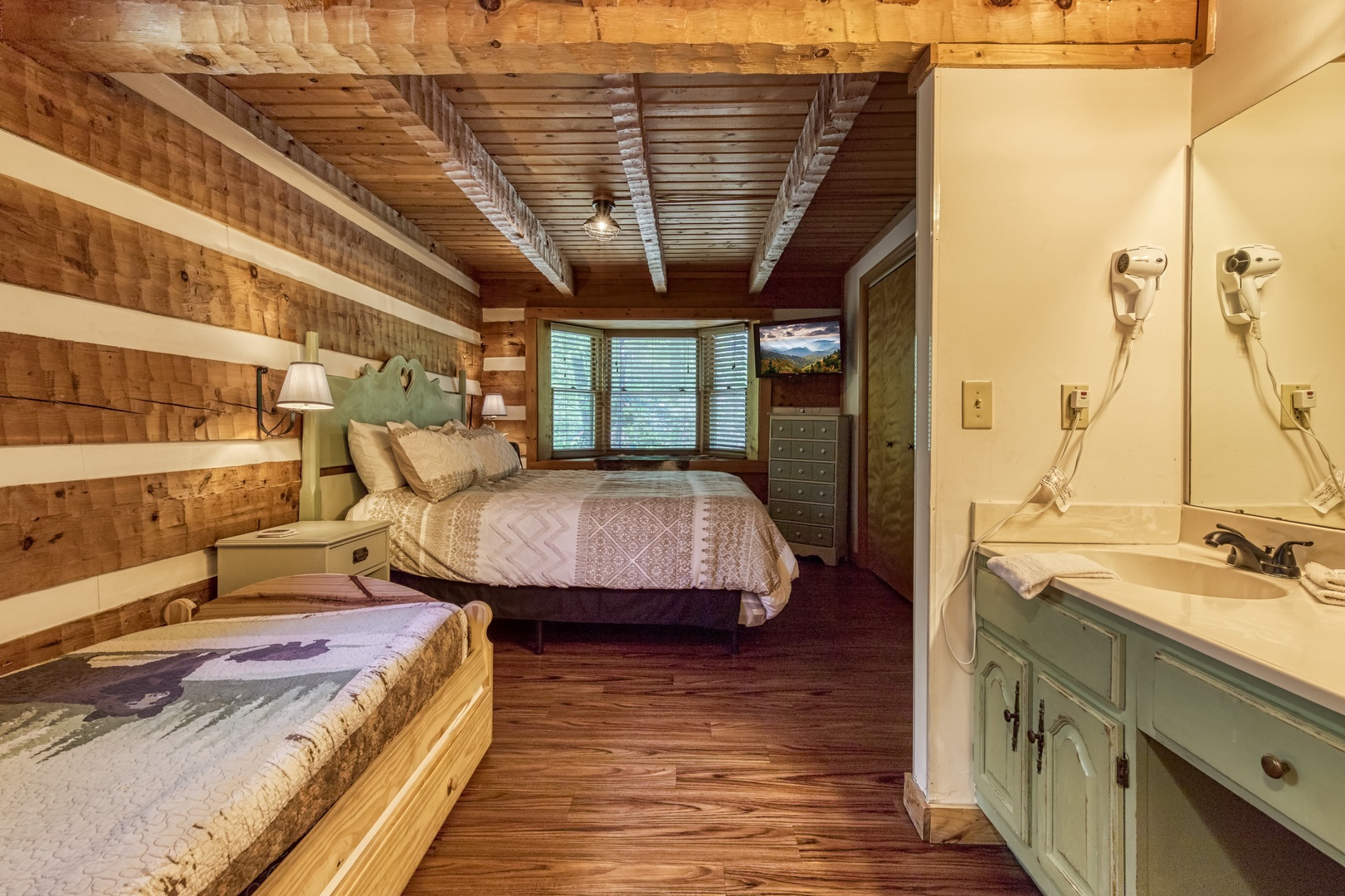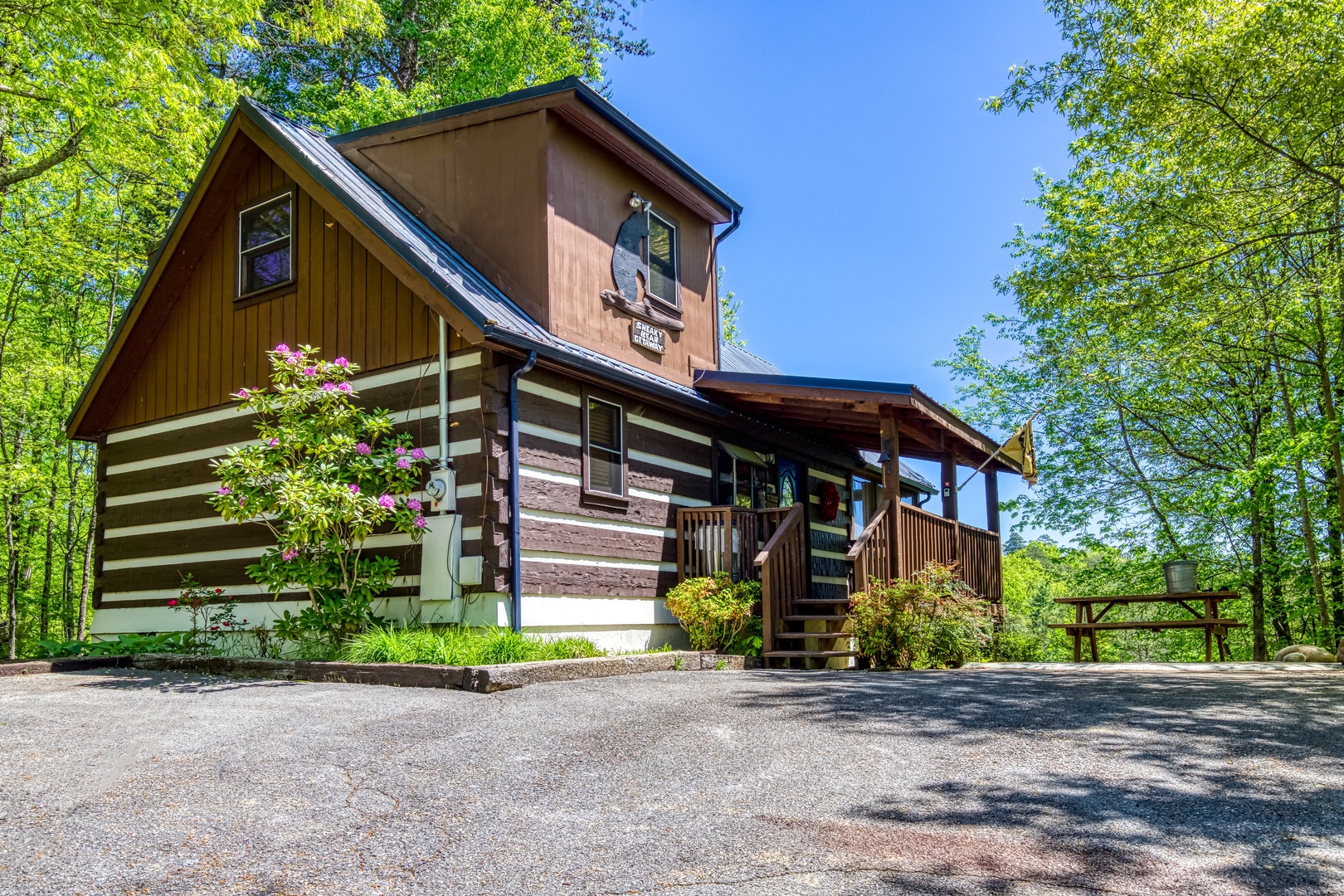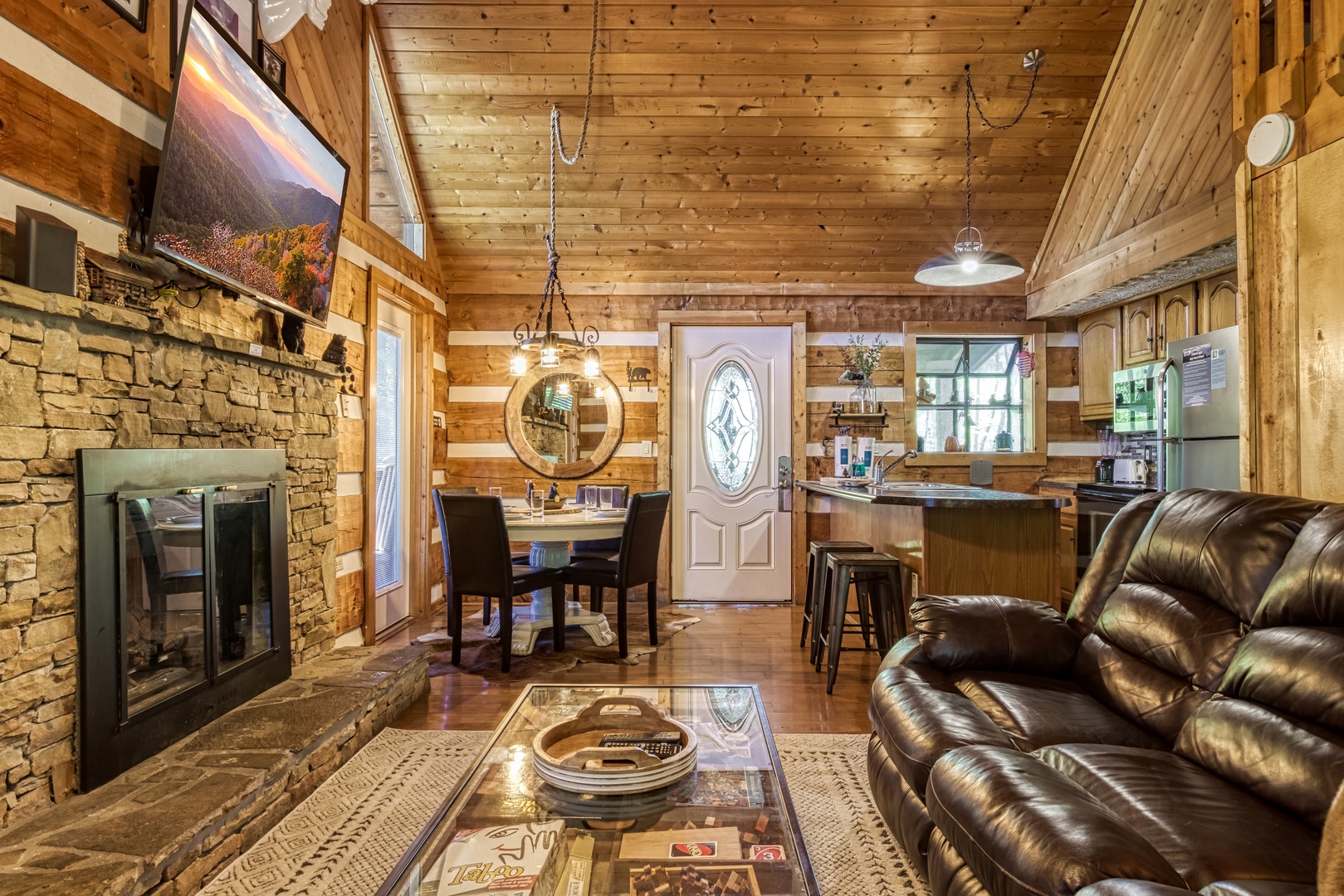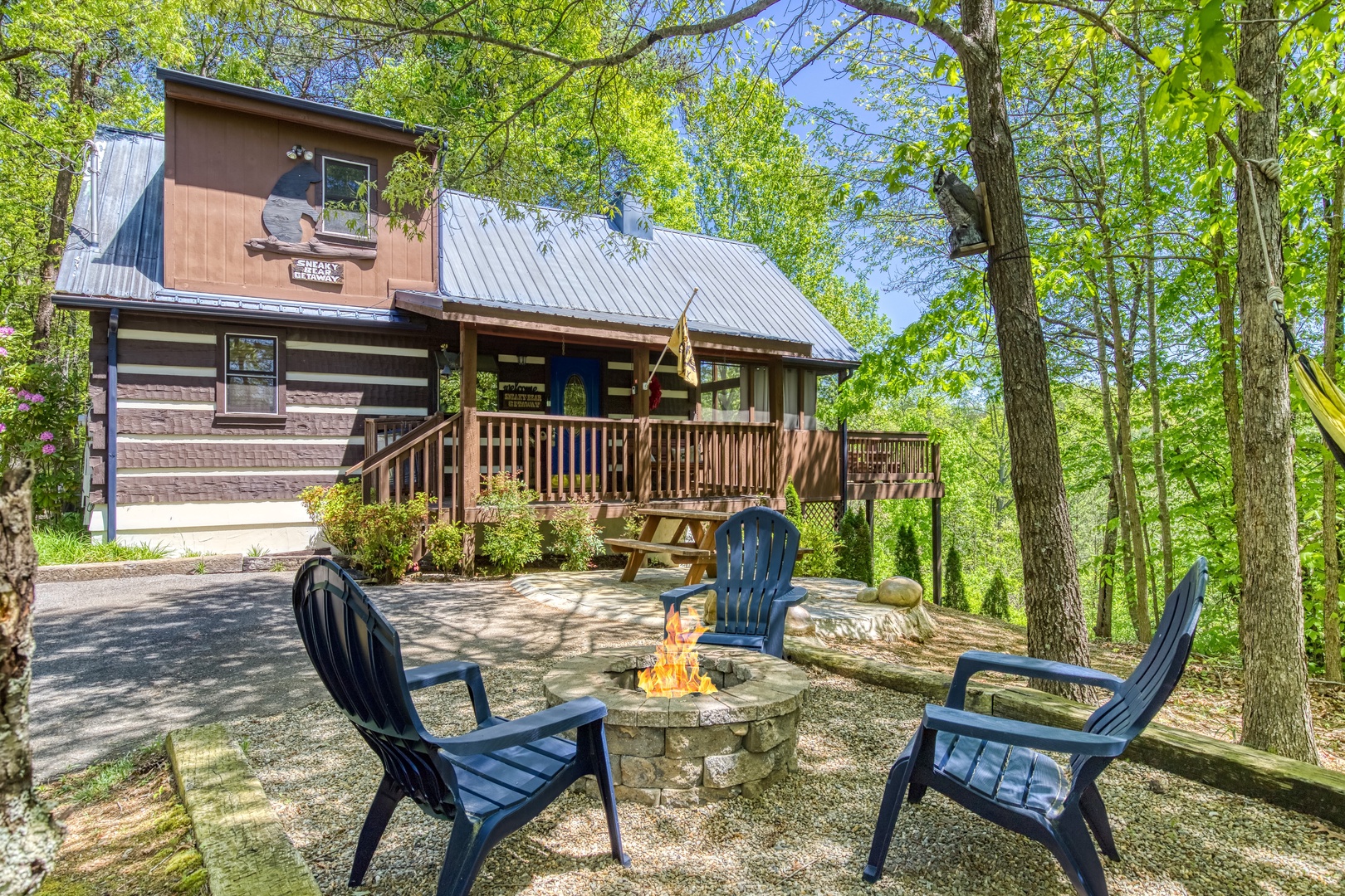 Escape to the enchanting allure of the Smoky Mountains with Sneaky Bear Getaway, a cozy cabin nestled amidst nature's embrace. Conveniently located near Pigeon Forge, this two-level retreat offers the perfect blend of rustic charm and modern comfort.