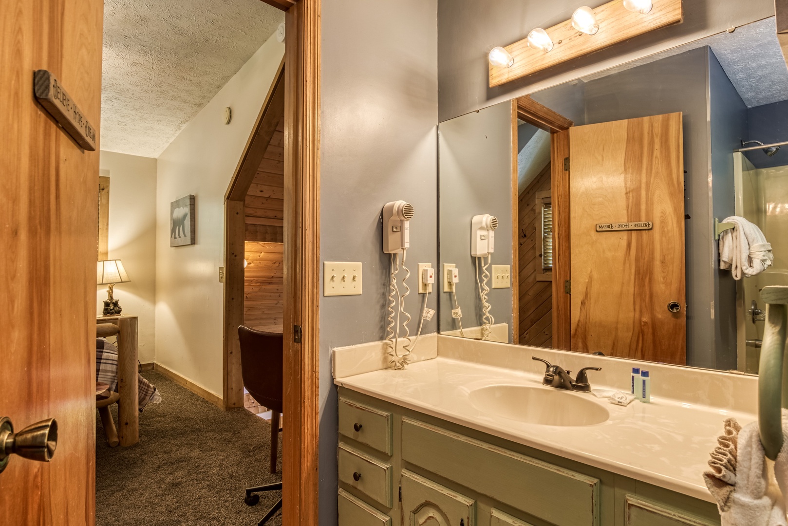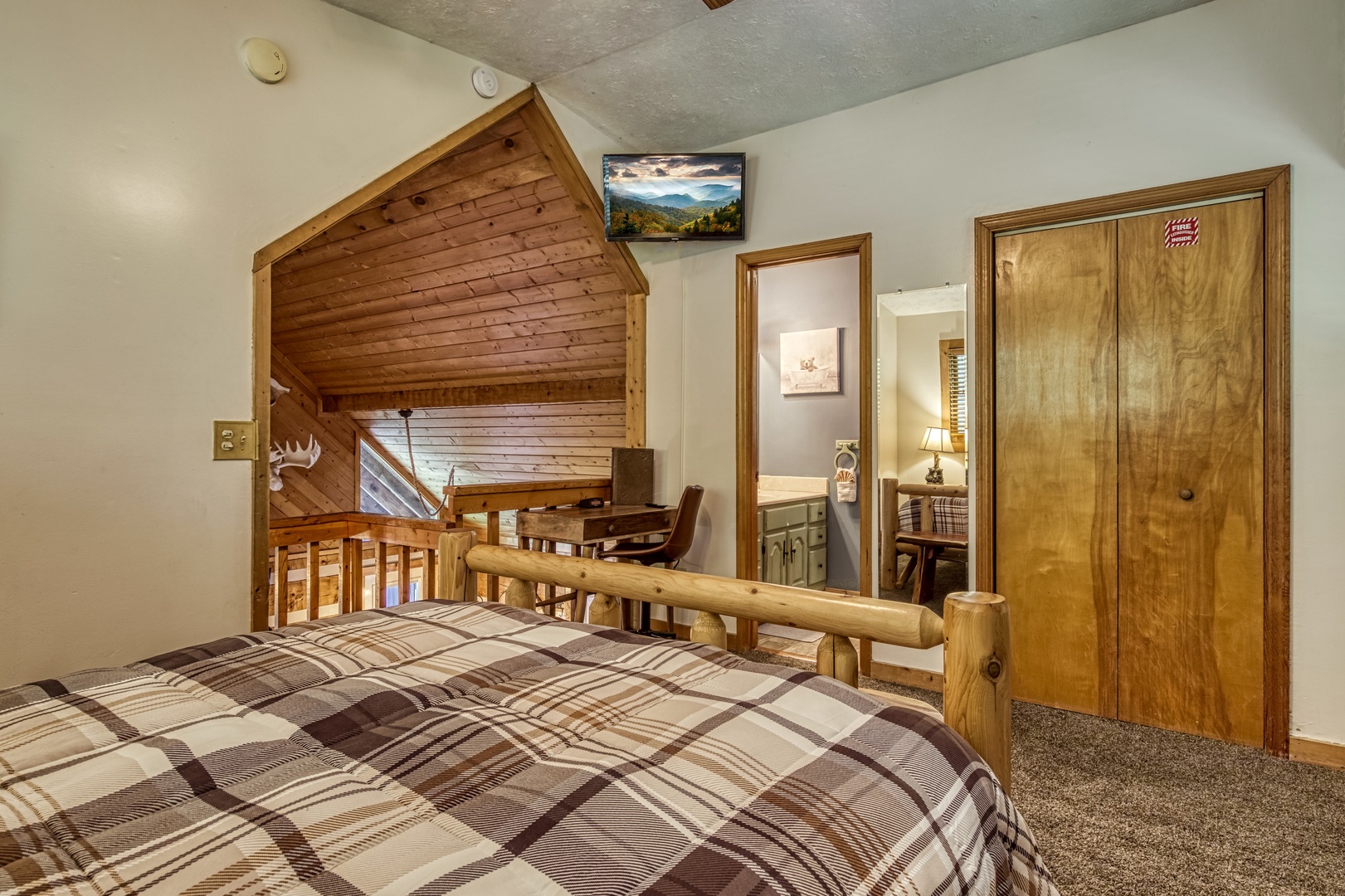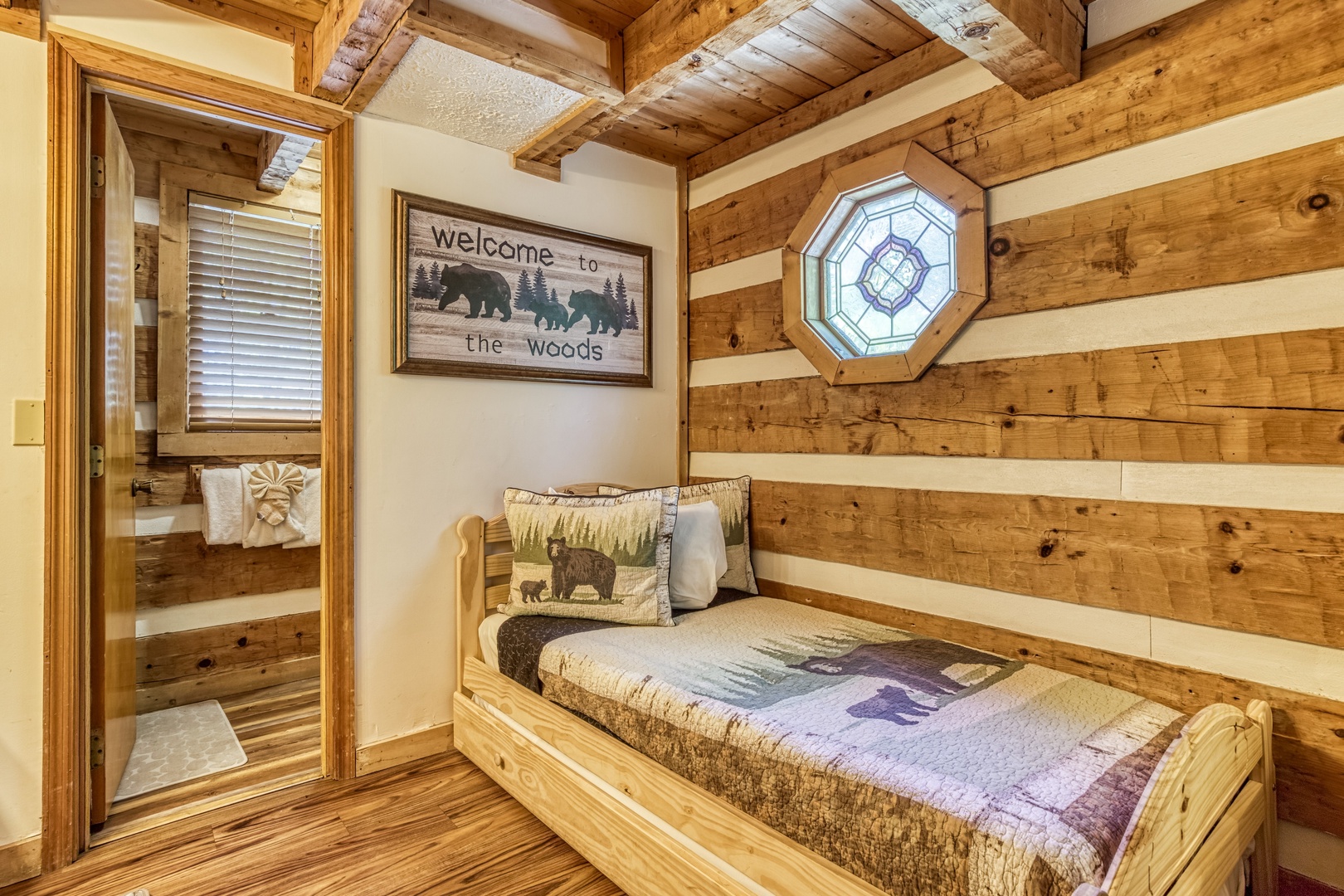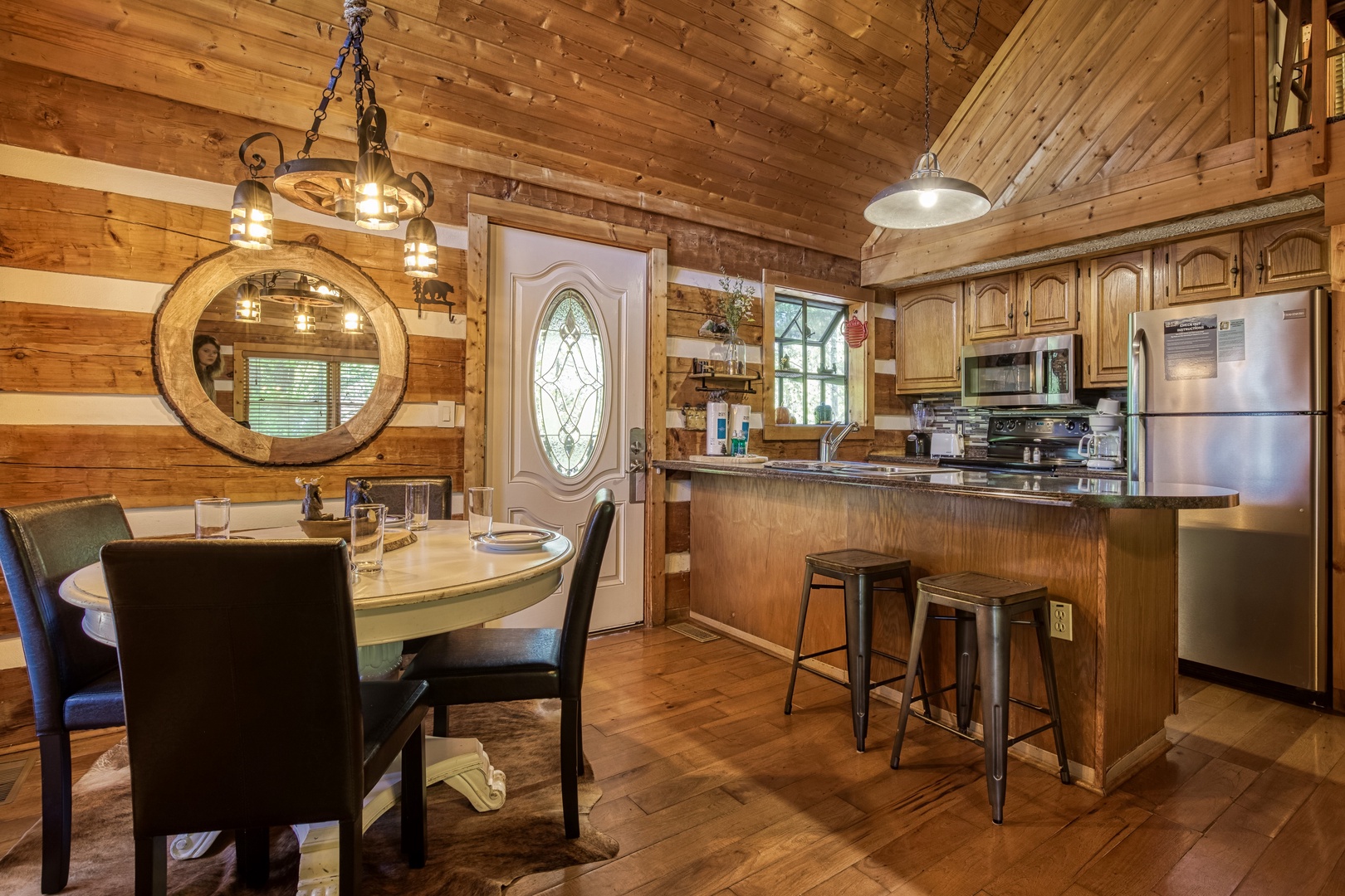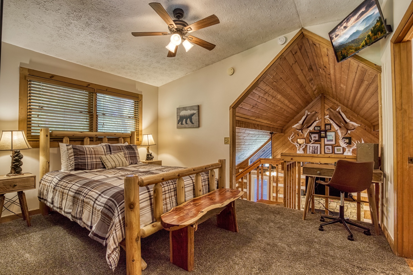 Escape to the enchanting allure of the Smoky Mountains with Sneaky Bear Getaway, a cozy cabin nestled amidst nature's embrace. Conveniently located near Pigeon Forge, this two-level retreat offers the perfect blend of rustic charm and modern comfort.