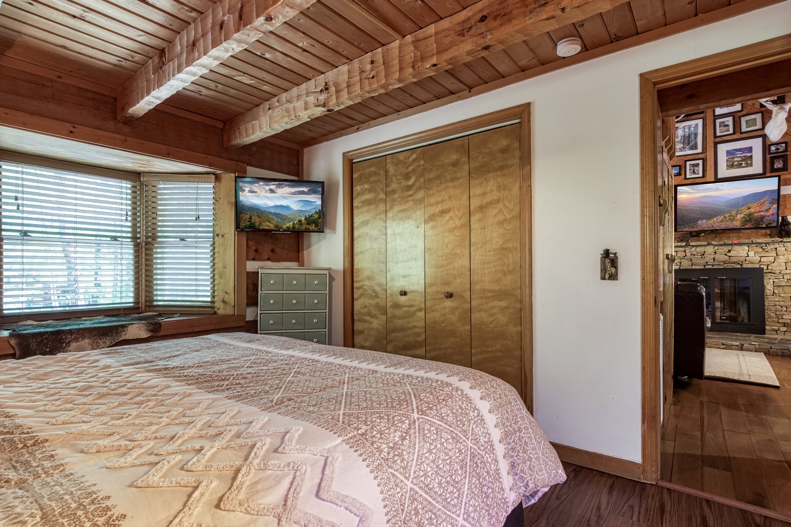 Step inside to discover a welcoming haven featuring two bedrooms and two baths, comfortably accommodating up to five guests. The spacious layout includes an open living room and dining area, ideal for cozy gatherings or tranquil moments by the fireplace.