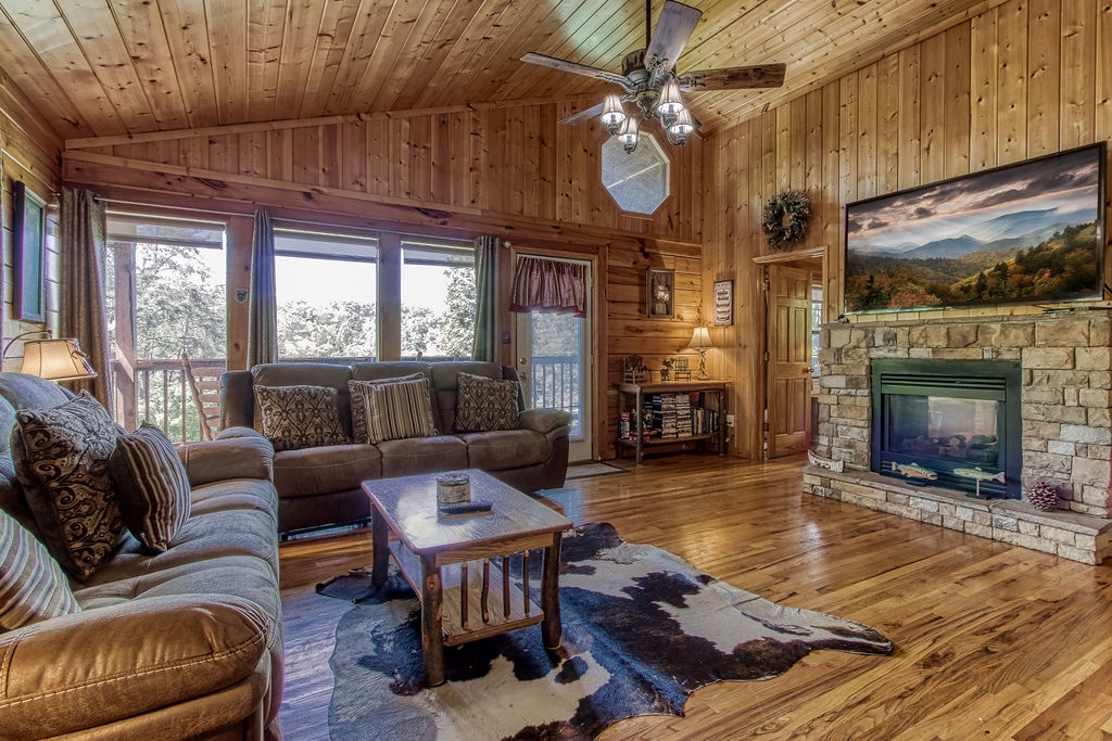 "Strawberry Fields" is the ideal getaway. Just like the song itself, by the Beetles, it is a classic. Perfect for honeymoons, anniversaries, a couple's retreat, just a simple weekend getaway to recoup. It’s even a great place to make a pit stop while traveling through. Conveniently located just 5 miles off the Parkway in Pigeon Forge. This beautiful and cozy cabin would be approximately 5 minutes from Dollywood & Splash Country being just 1 mile from the parking lot, and 22 minutes from Gatlinburg. This cabin has some slight inclines, and is paved all the way to the cabin, however we do not recommend trailers.
