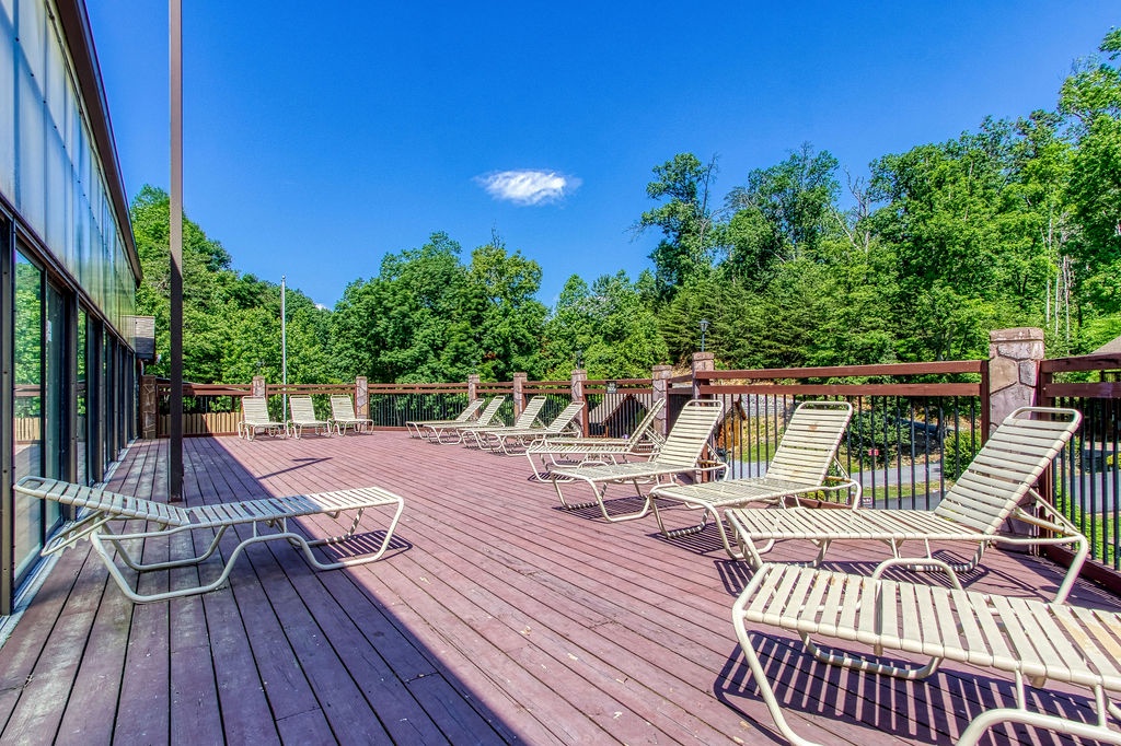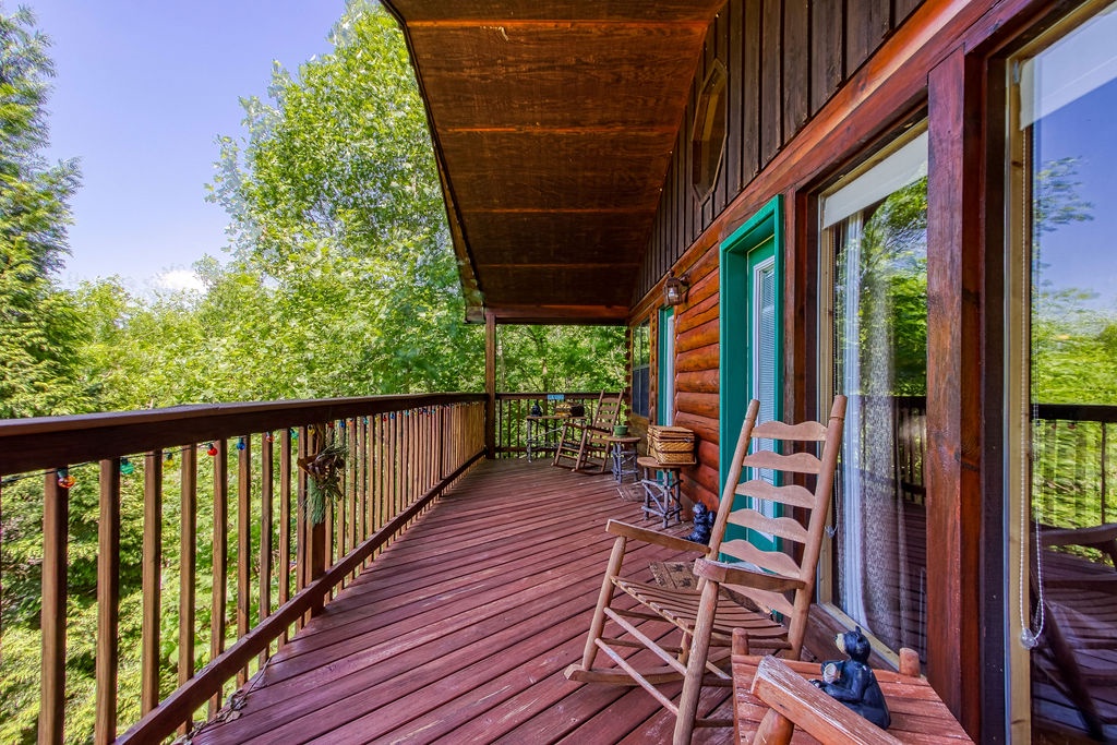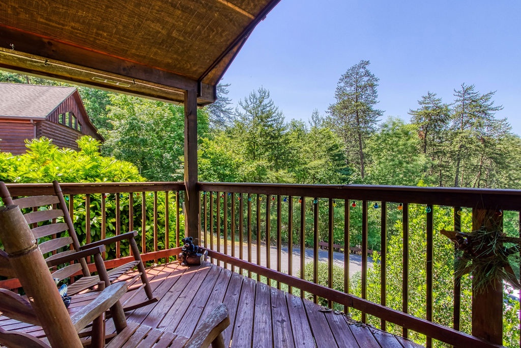 On the back porch you will find rocking chairs to relax with your morning’s coffee or your nightcap cup of tea. The view overlooks Pigeon Forge, The Ripken Experience, and The Great Smoky Mountain Wheel.