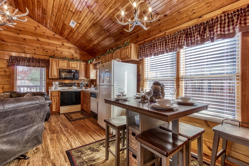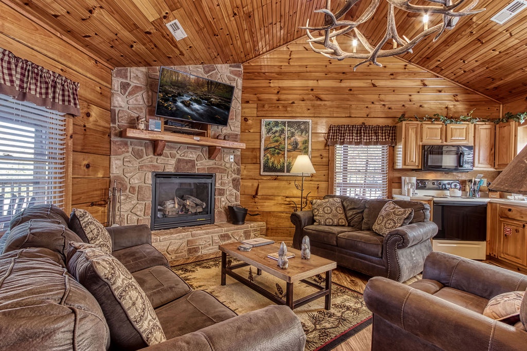 We had a fantastic time the cabin was clean and very cozy:) loved the deer antler light in the main level. Everything was great!